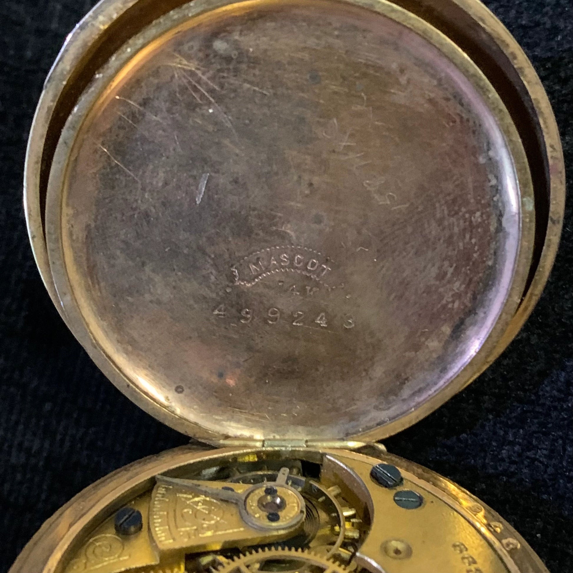This pocket watch is in good vintage condition. The clock itself is not working and needs to be wound or potentially repaired further. This is a gorgeous and unique piece.