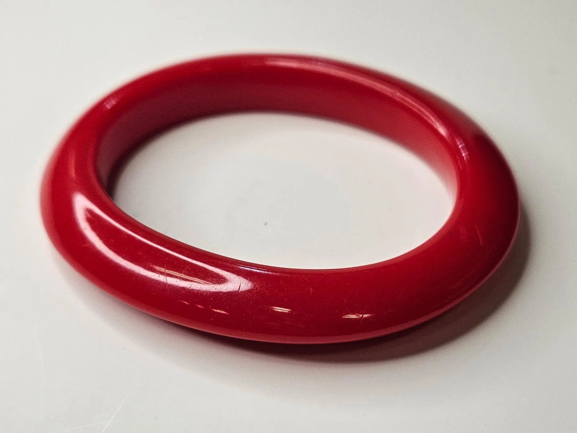 1950s Red Plastic Bangle- Oblong Sculpted Outer Edge