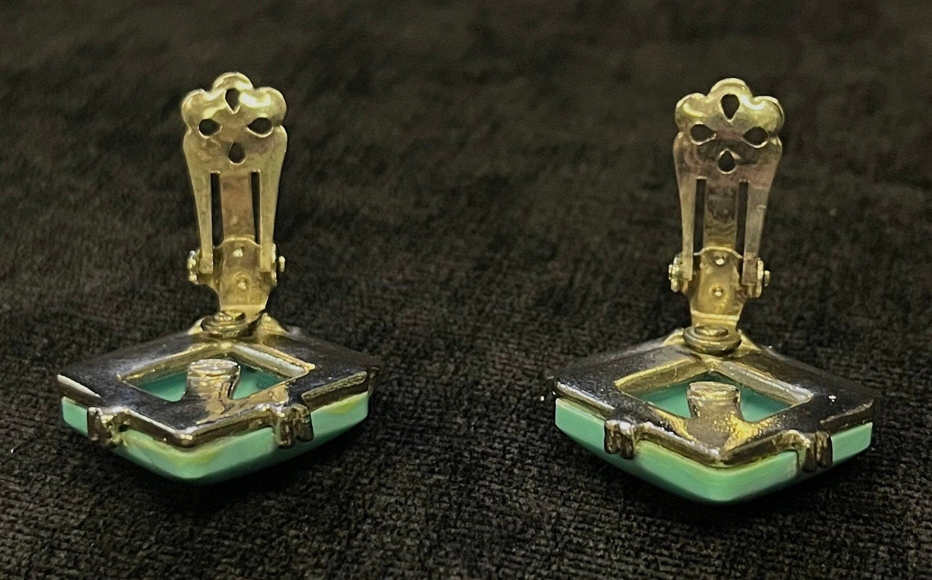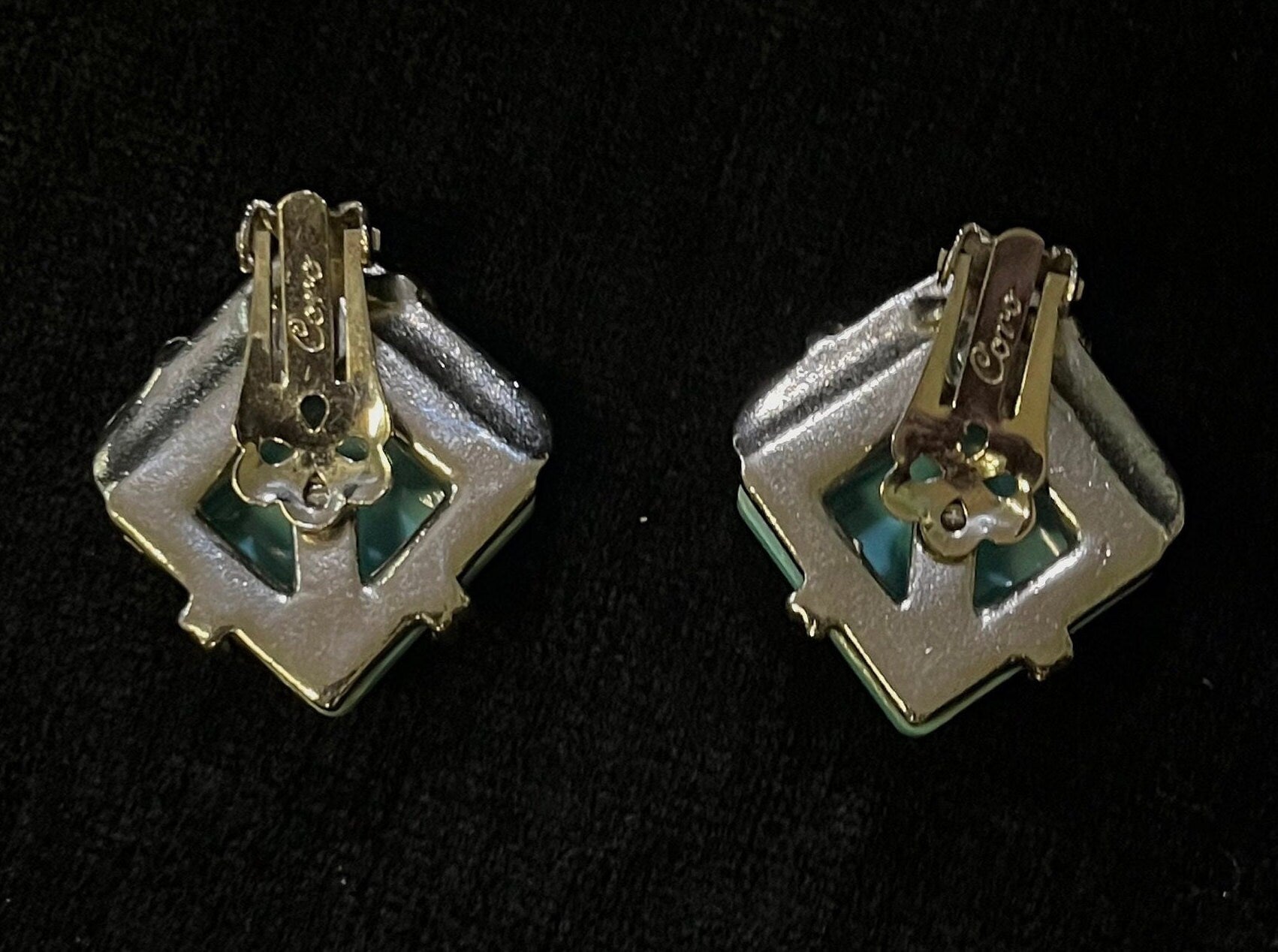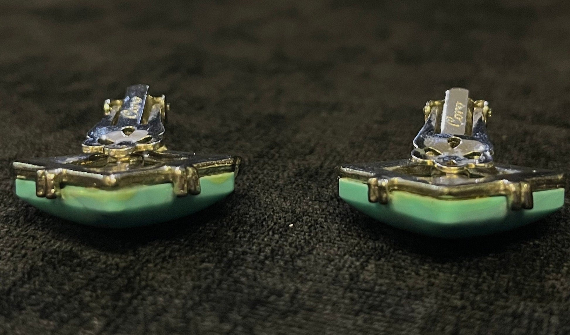 These clip on earrings are a gorgeous piece to add to any vintage earring collection, they bring character and color to any outfit with the bright beautiful turquoise, and silver wood details. They are a blast from the past that will make you stand out. These earrings are a perfect gift to anyone who appreciates vintage accessories and chunky jewelry. everything is in good condition.