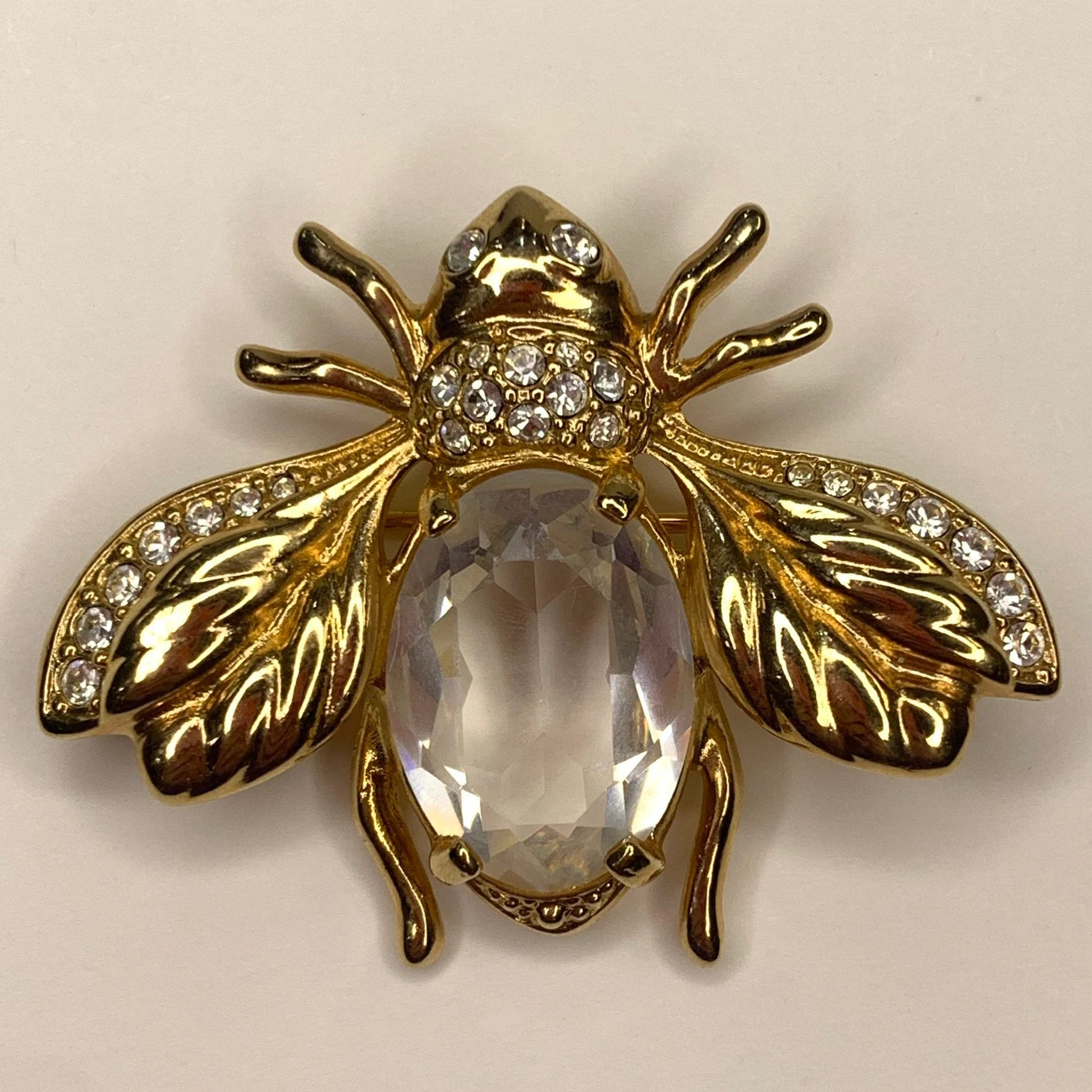 1990s Swarovski Brooch - Crystal and Gold-Tone Bee Brooch - Rhinestone Bee Pin - Austrian Crystal Bee Brooch