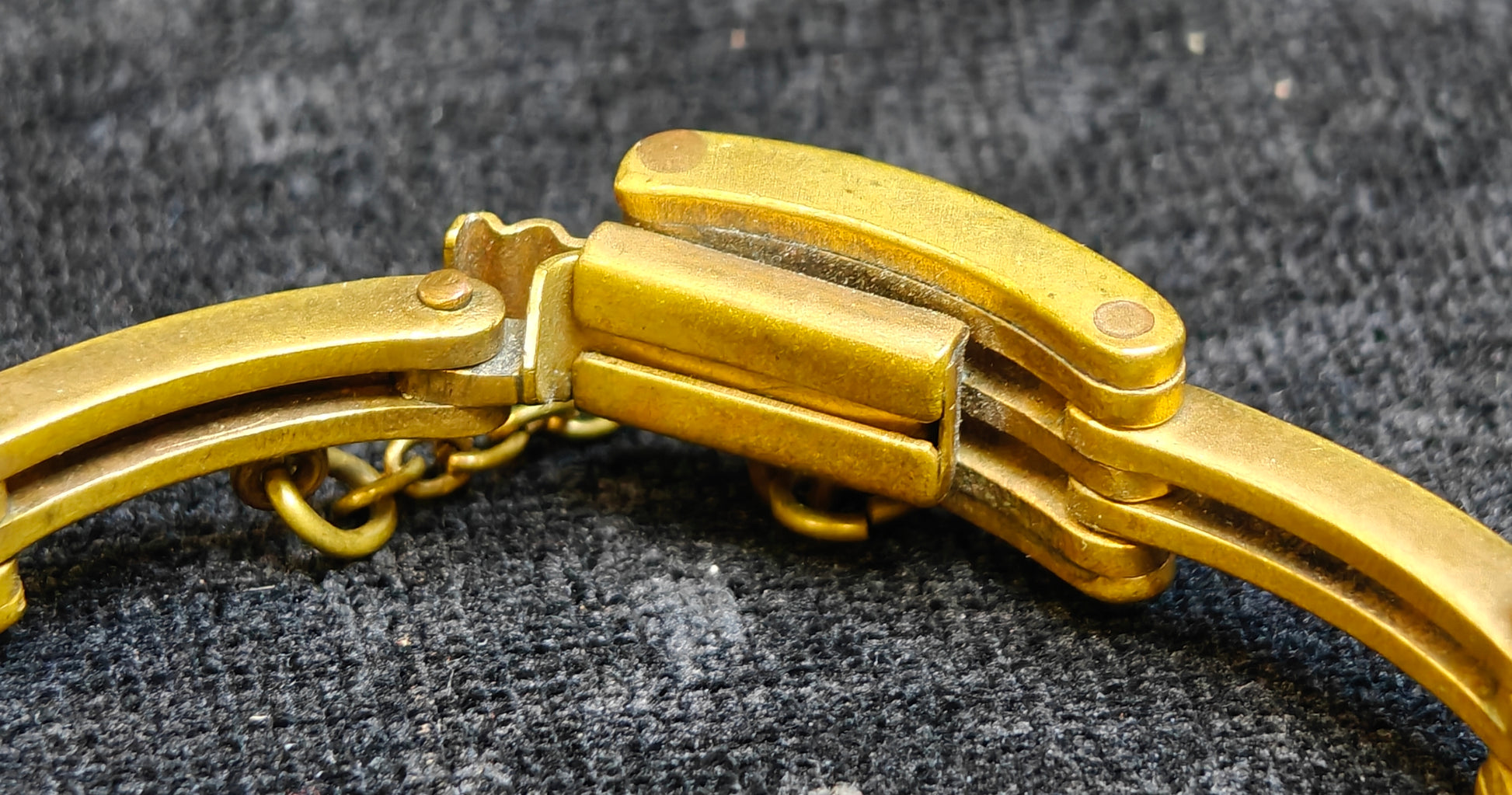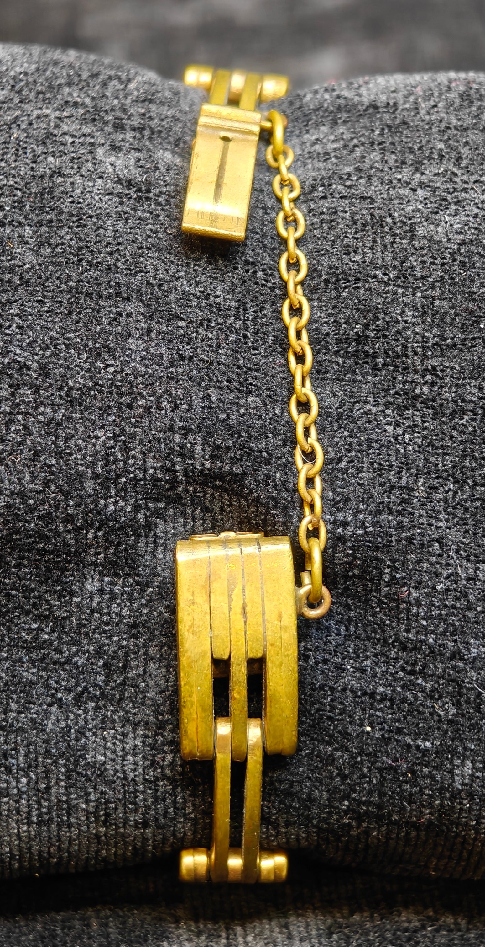 Materials: The bracelet is vintage brass, which glows a mellow brass look. It has a well made clasp which is combined with a safety chain.