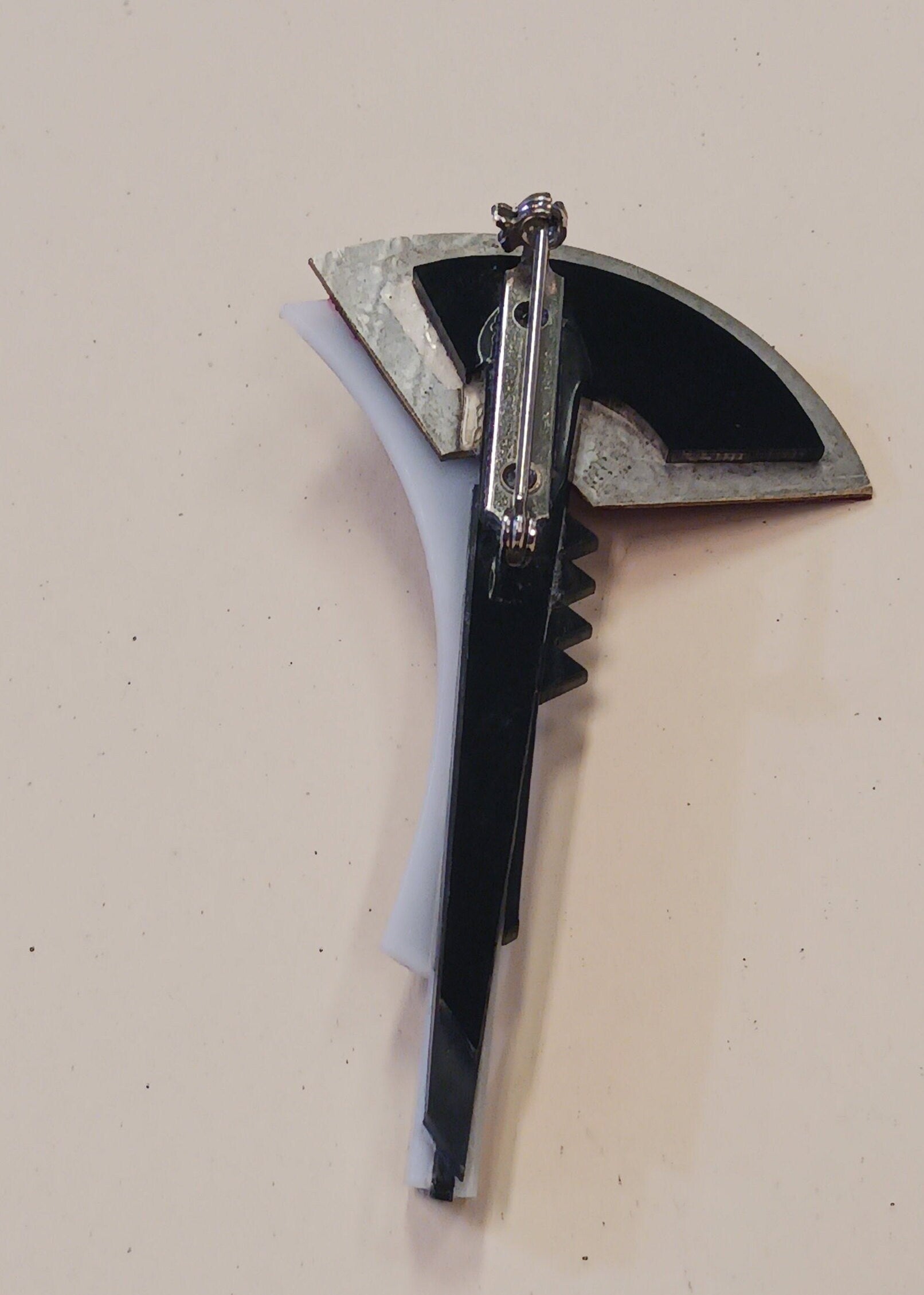 Black and White Brooch with Red Reflective Fan - Mid Century Modern Art Brooch - Vintage 1970s - Fantastic Large Plastic and Acrylic Pin