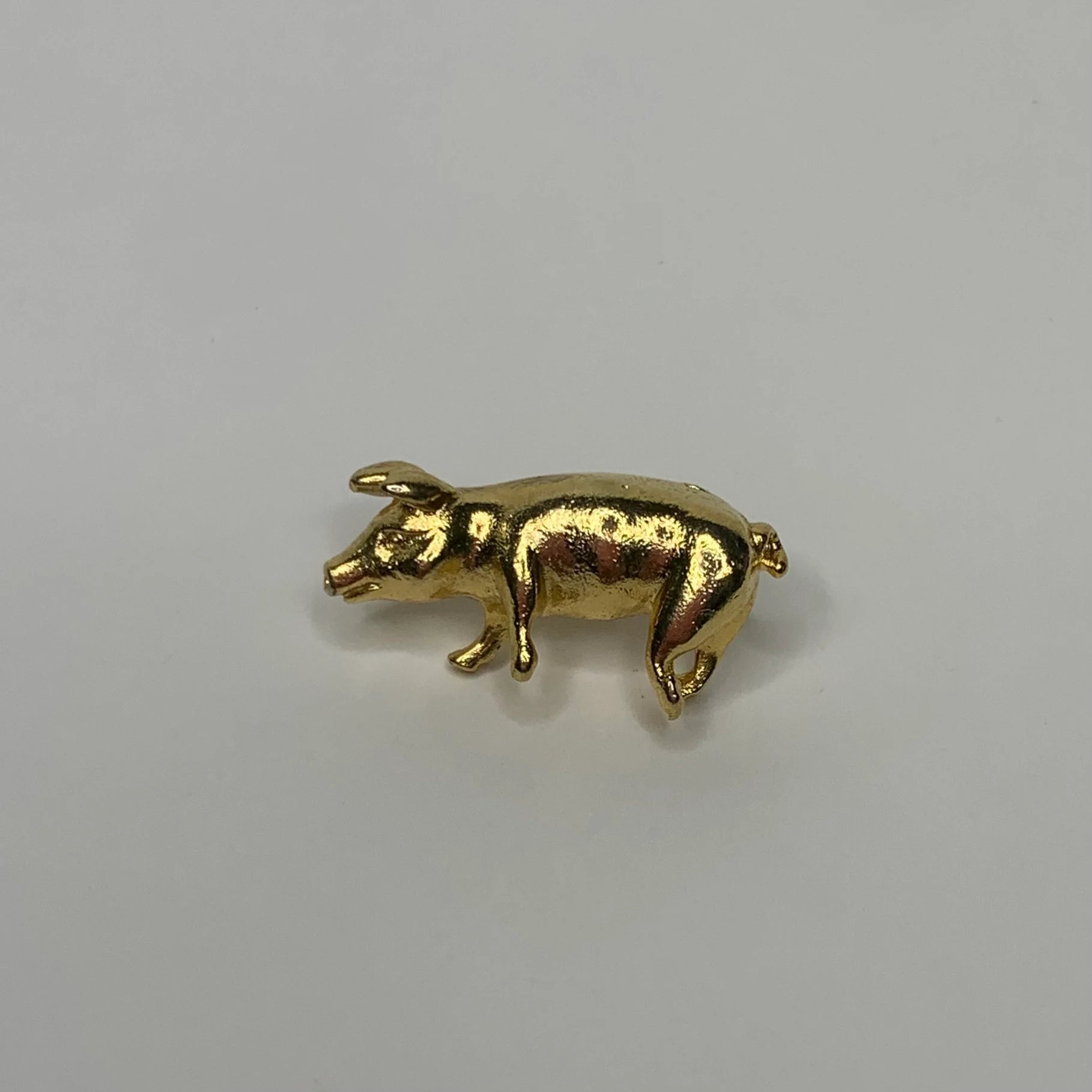 This little pig lapel pin makes a great gift for the pig collectors in your life. The details of the little pig give it a luxurious look and feel. This small pig pin is in excellent condition with no visible bruises, scratches, dents, or marks. He would be the perfect gift to purchase for the wife of a gentleman farmer.