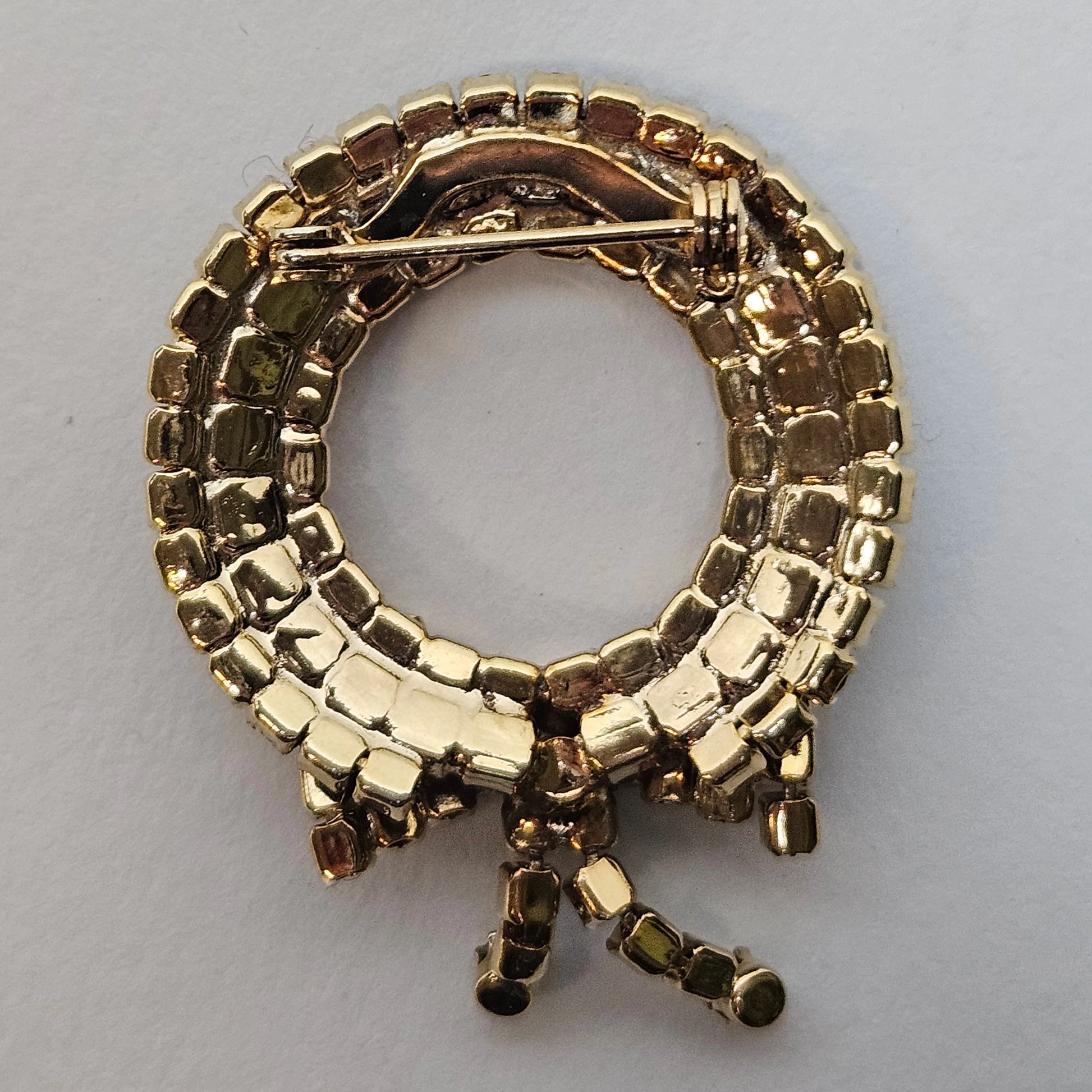Christmas or Holiday Wreath Pin, perfect for a Hat, scarf, or coat. I love how it sparkles like the season and can accessorize any outfit. There is no maker's mark, but the crystal appears to be Austrian and has a beautiful reflective quality. This would be a proud addition to a Christmas Pin Collection.