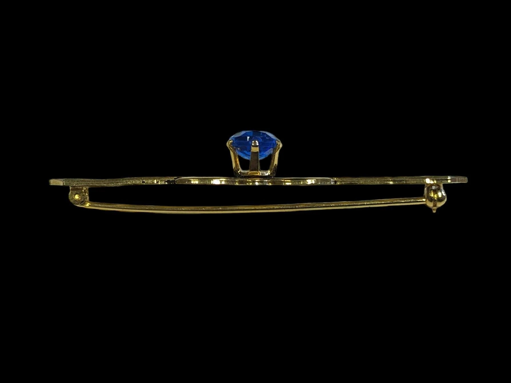 This piece was made in the 1940s, most likely, as a copy of a Victorian collar pin. The original Victorian pin, would have been 14k gold, with Sapphire Stone.