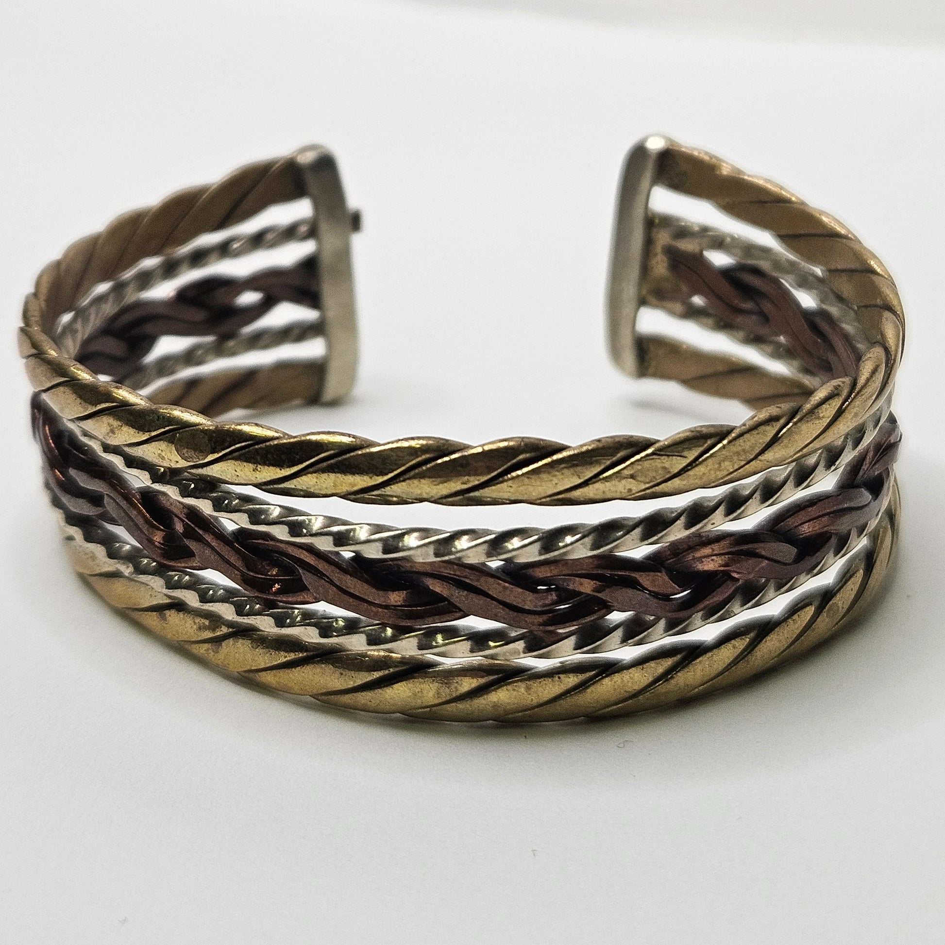 Copper, Brass, and Steel Braided Cuff Bracelet - Adjustable Tri-Color Bracelet - Beautiful Boho Cuff Bracelet