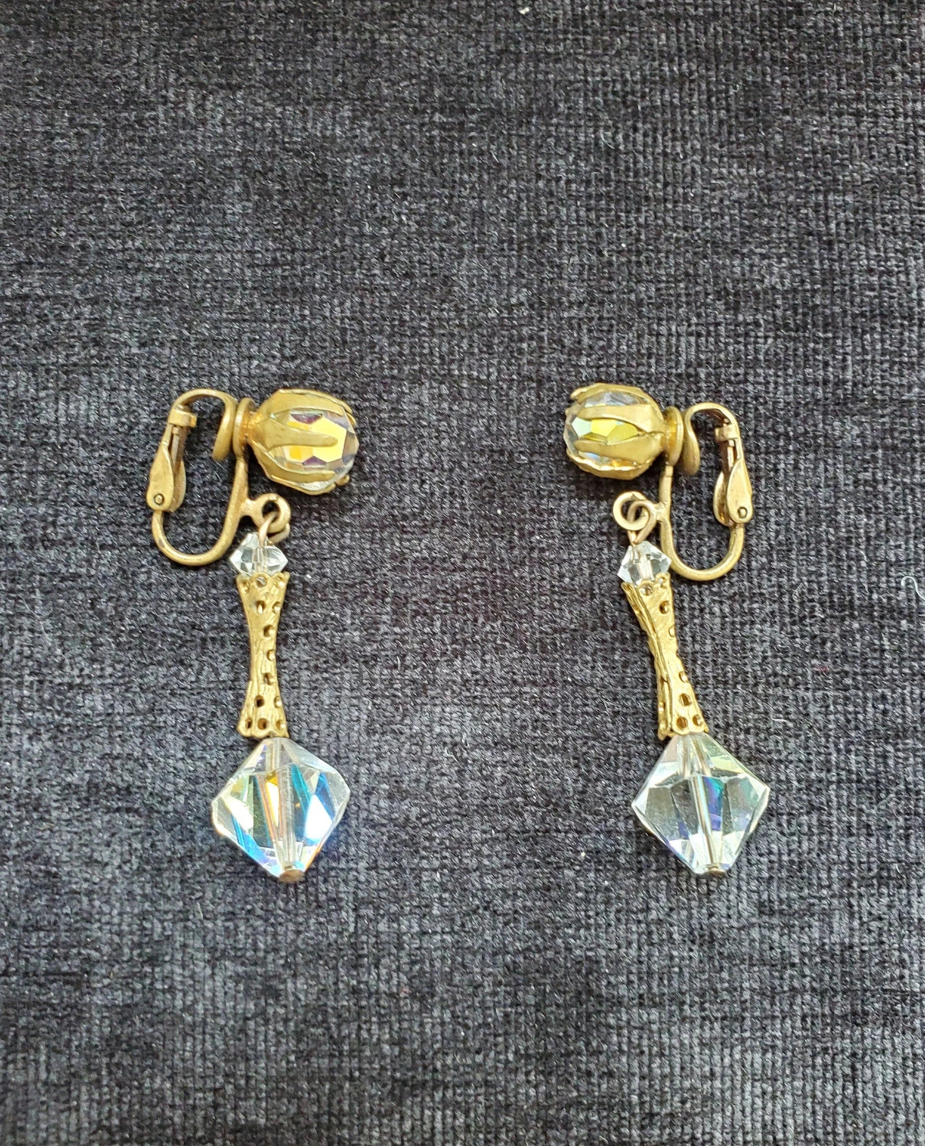 Crystal Dangle Clip-on Earrings, 1950s