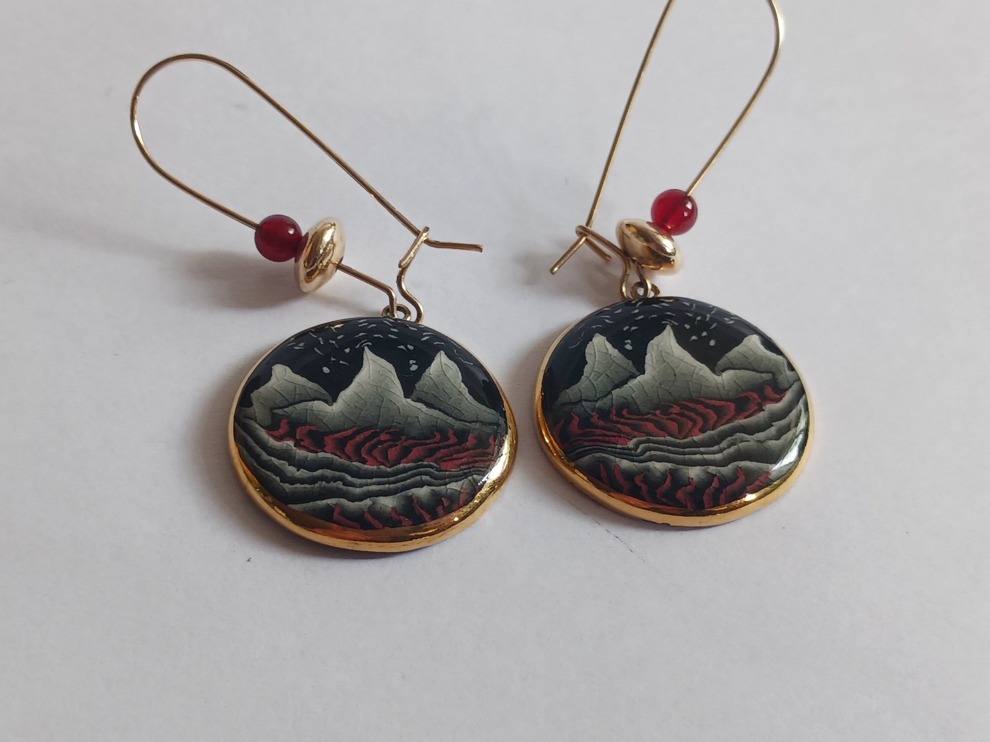 Desert Scene Enamel Hook Earrings - Modern Art Enameled Earrings