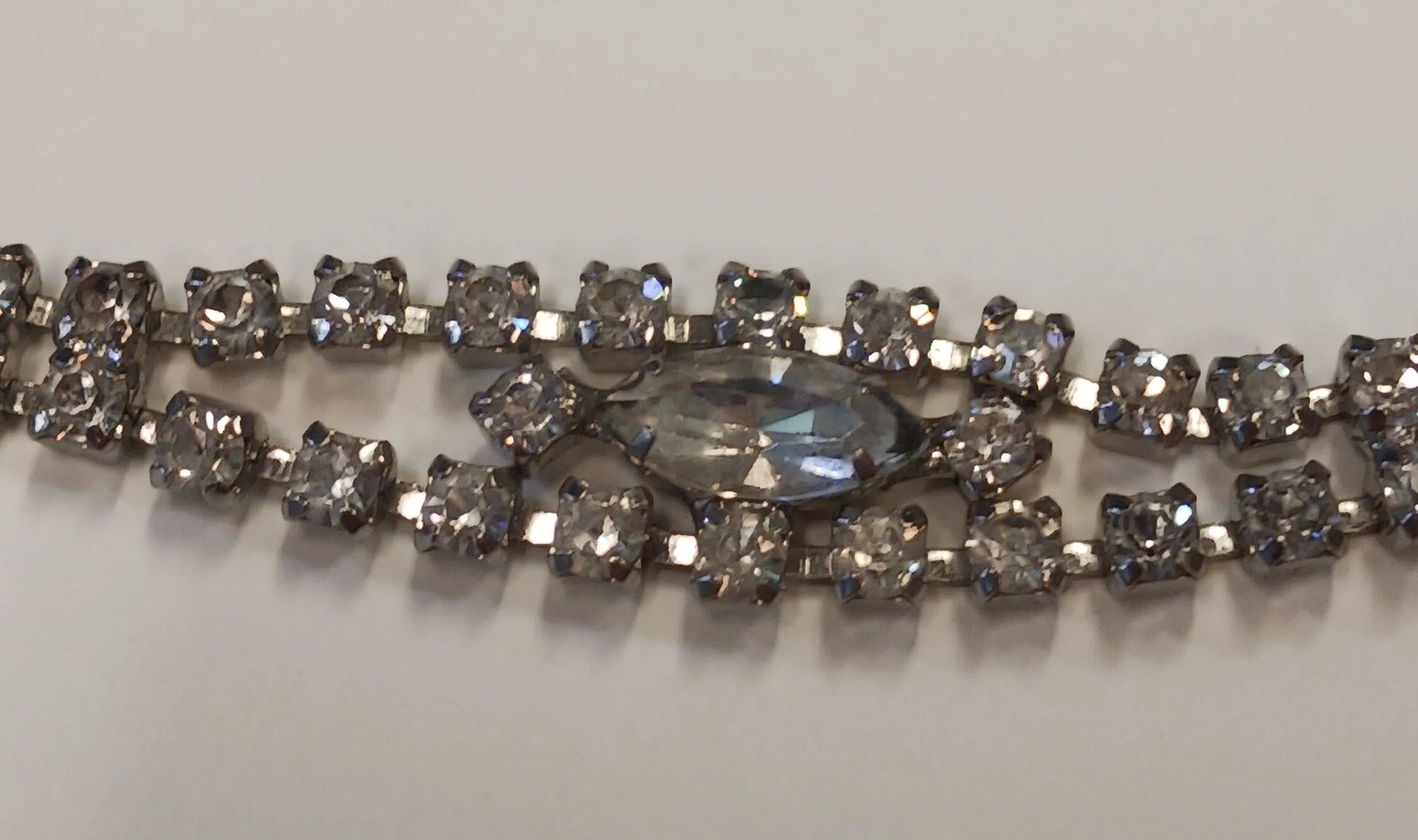 Double Strand Crystal Rhinestone Bracelet With Large Diamond Shaped Center - Vintage 1950s - Great Bridal Jewelry