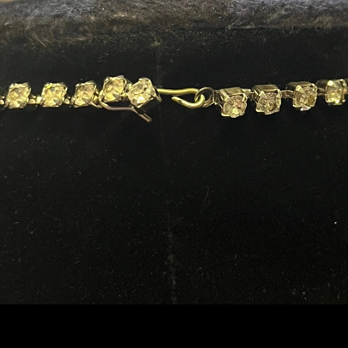 This Necklace is a timeless masterpiece that radiates with understated glamour. Crafted with meticulous precision, this vintage necklace showcases a dazzling array of crystal-clear, Austrian rhinestones, set in a delicate and intricate pattern. Its classic design captures the essence of vintage sophistication and can effortlessly elevate any attire, whether it's a Bridal gown, a formal evening gown or a simple blouse. With a nod to the bygone era of elegance, this necklace is a captivating accessory, perfect for those who appreciate the enduring allure of vintage jewelry. Perfect for a bride or to be, or paired with a simple little black dress. This piece caould folow the activities a of a bride for years to come.
