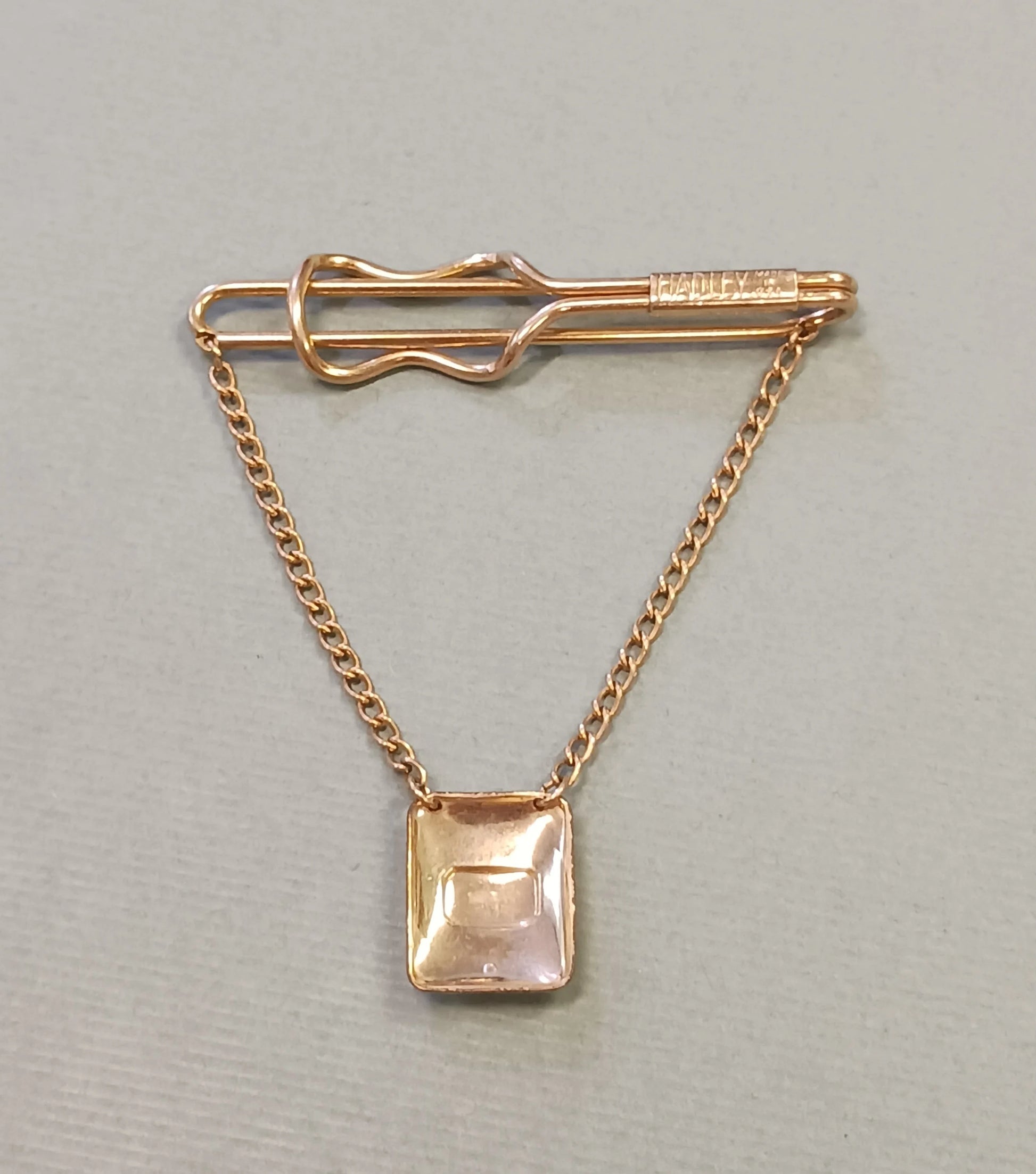 Gold Tie Bar with Chain and Pendant - Signed Hadley Menswear - Made in the U.S.A. - Retro Tie Bar- Mid Century Modern Tie Bar