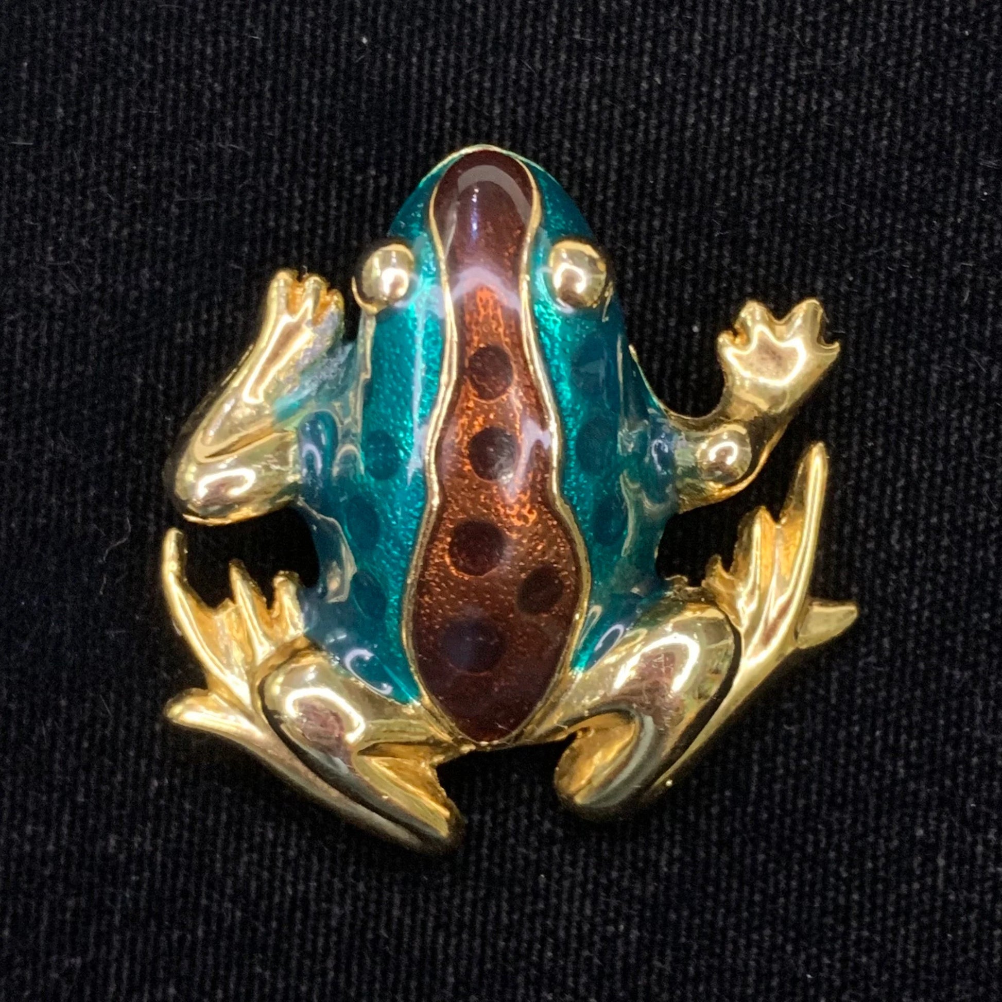 Green and Brown Enamel on Gold Tree Frog Brooch/ Pin