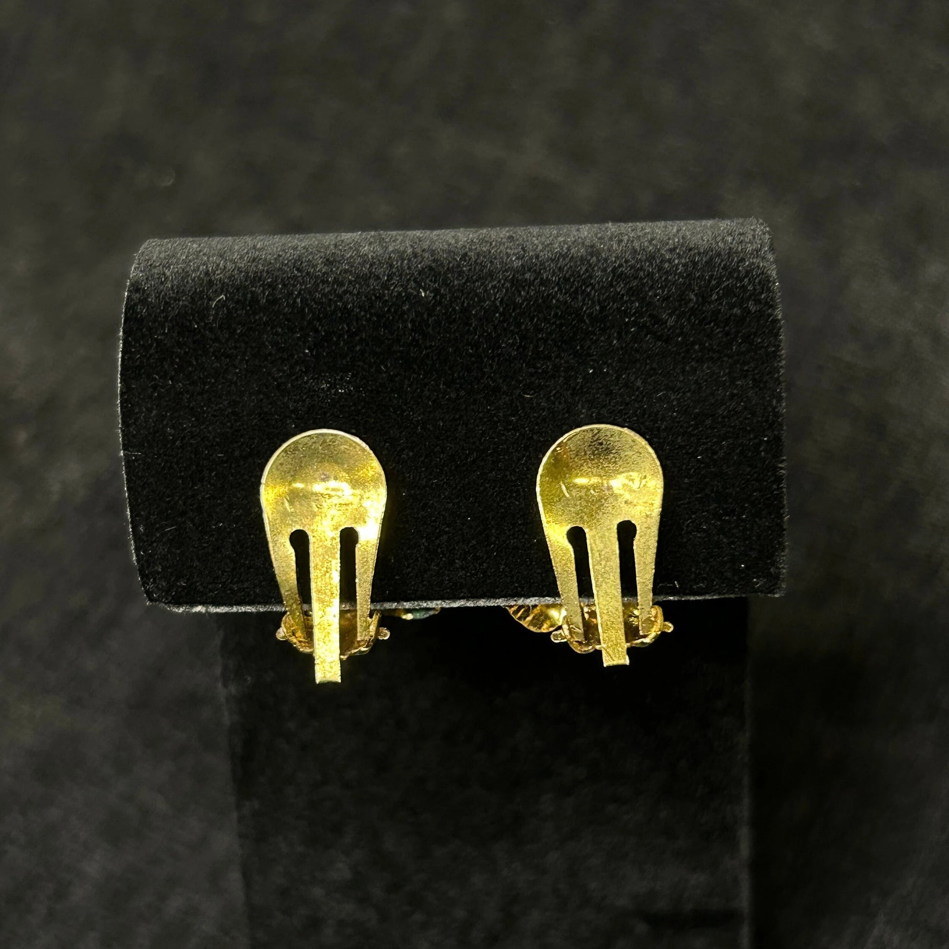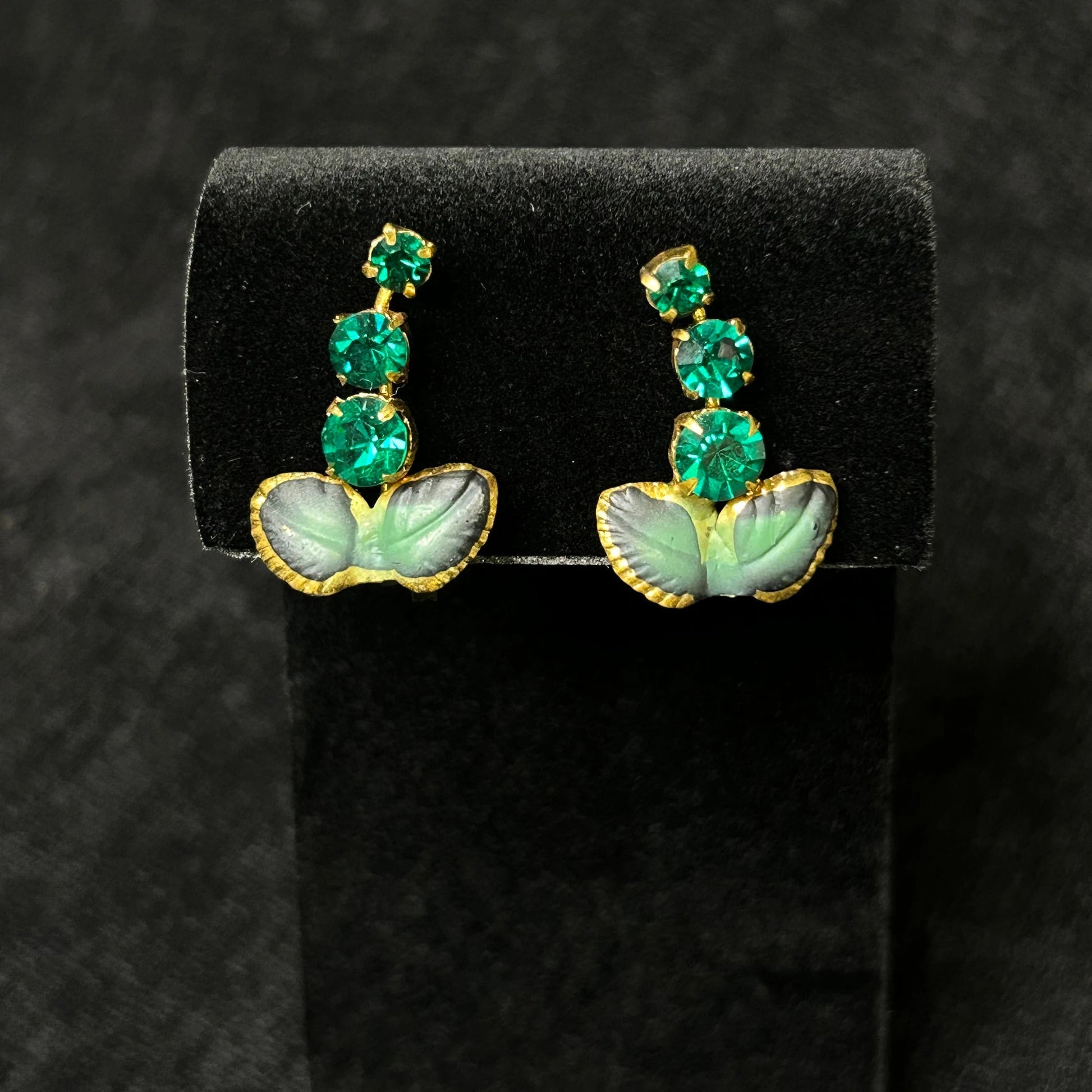Green Leaves / Rhinestone Clip On Brooch Earrings