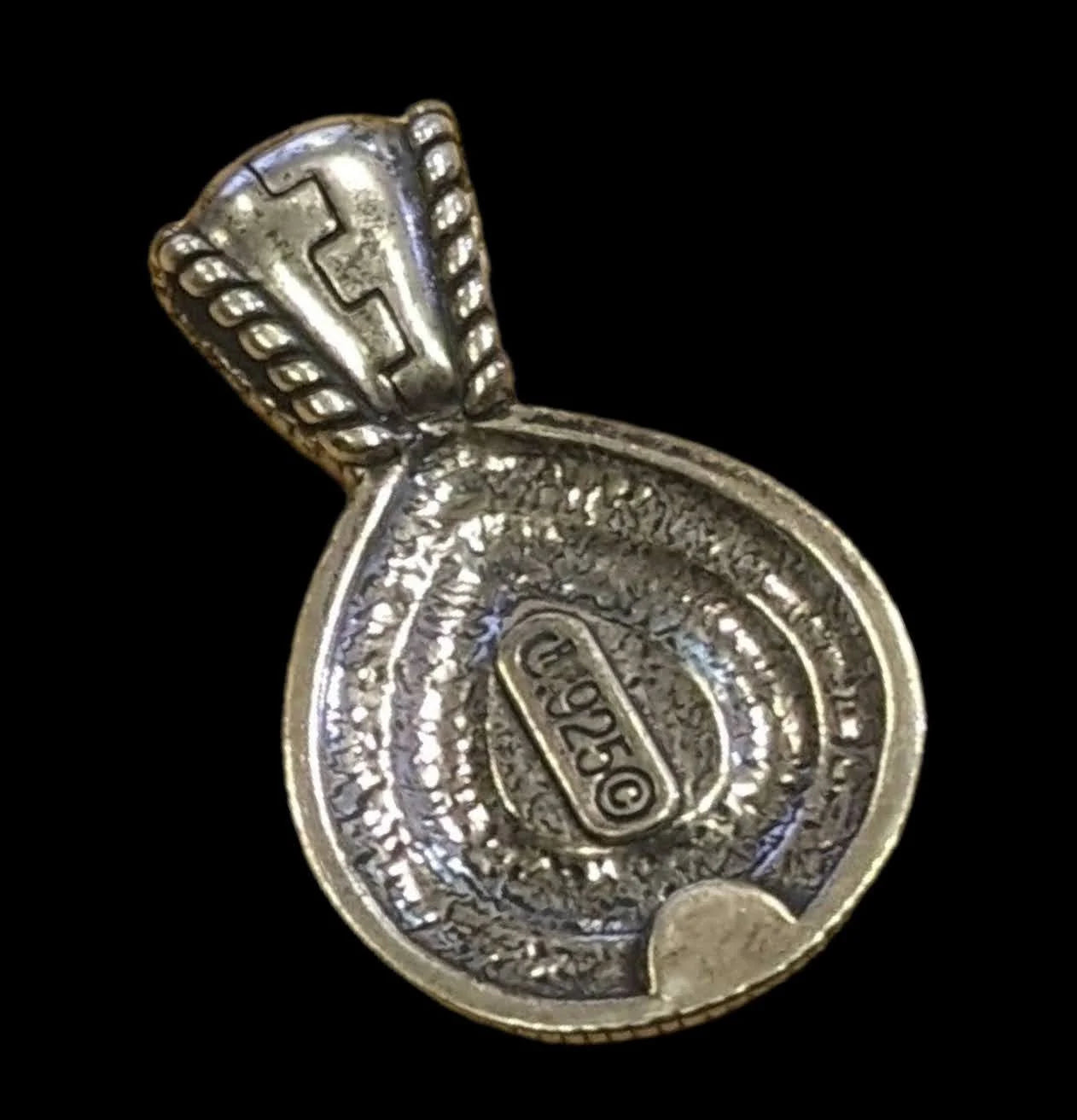 This pendant does not come with a chain, any silver chain would compliment it. It is signed on the back by the maker Carolyn Pollack. It also says .925 to inform its made of sterling silver. Carolyn and her husband began making Native American style jewelry, like this pendant, in about 1996. They used stones from the American and Mexican Southwest. Her style has change over time, but the quality and variety of stones she uses, has only made her line better over time.
