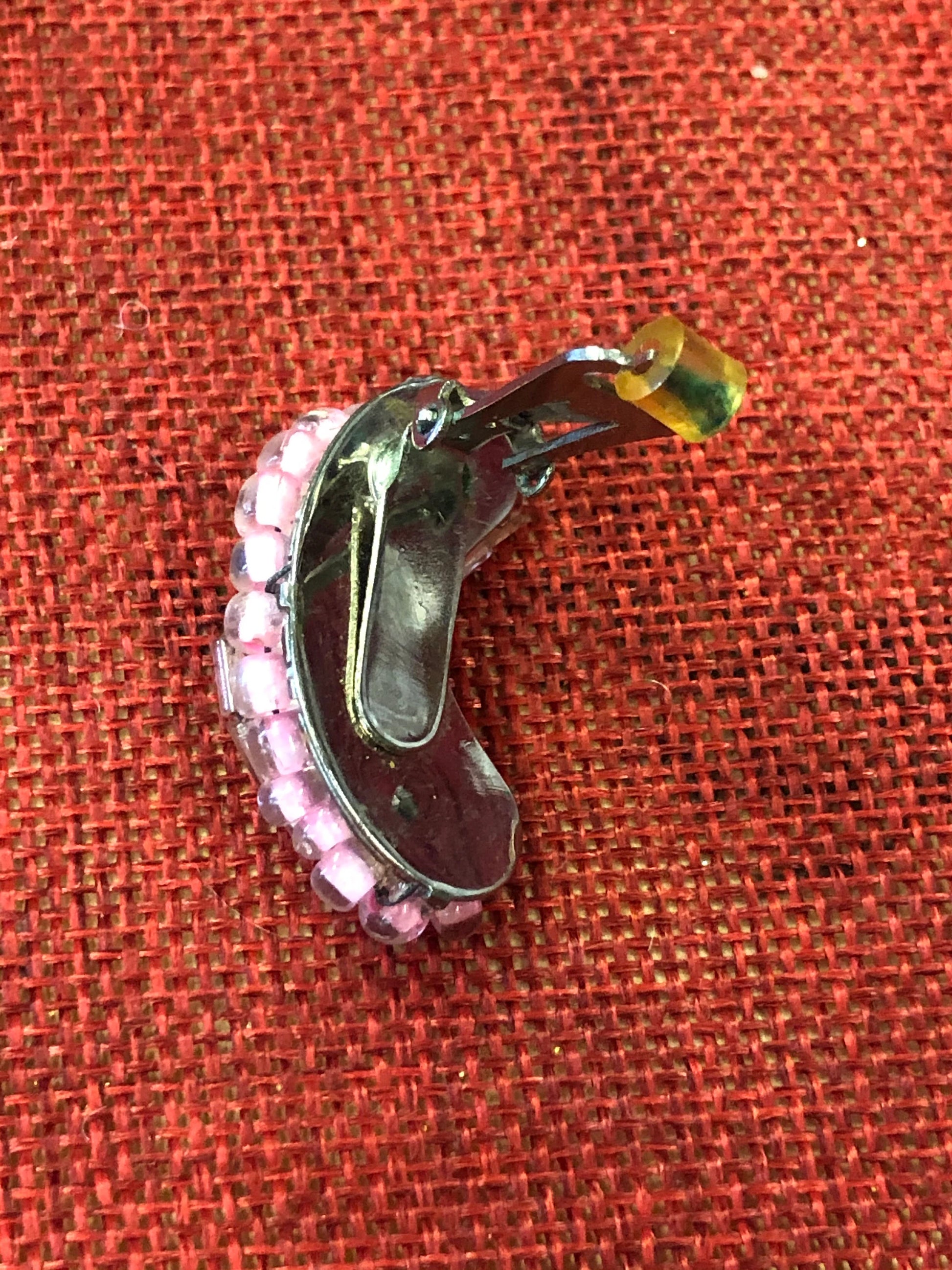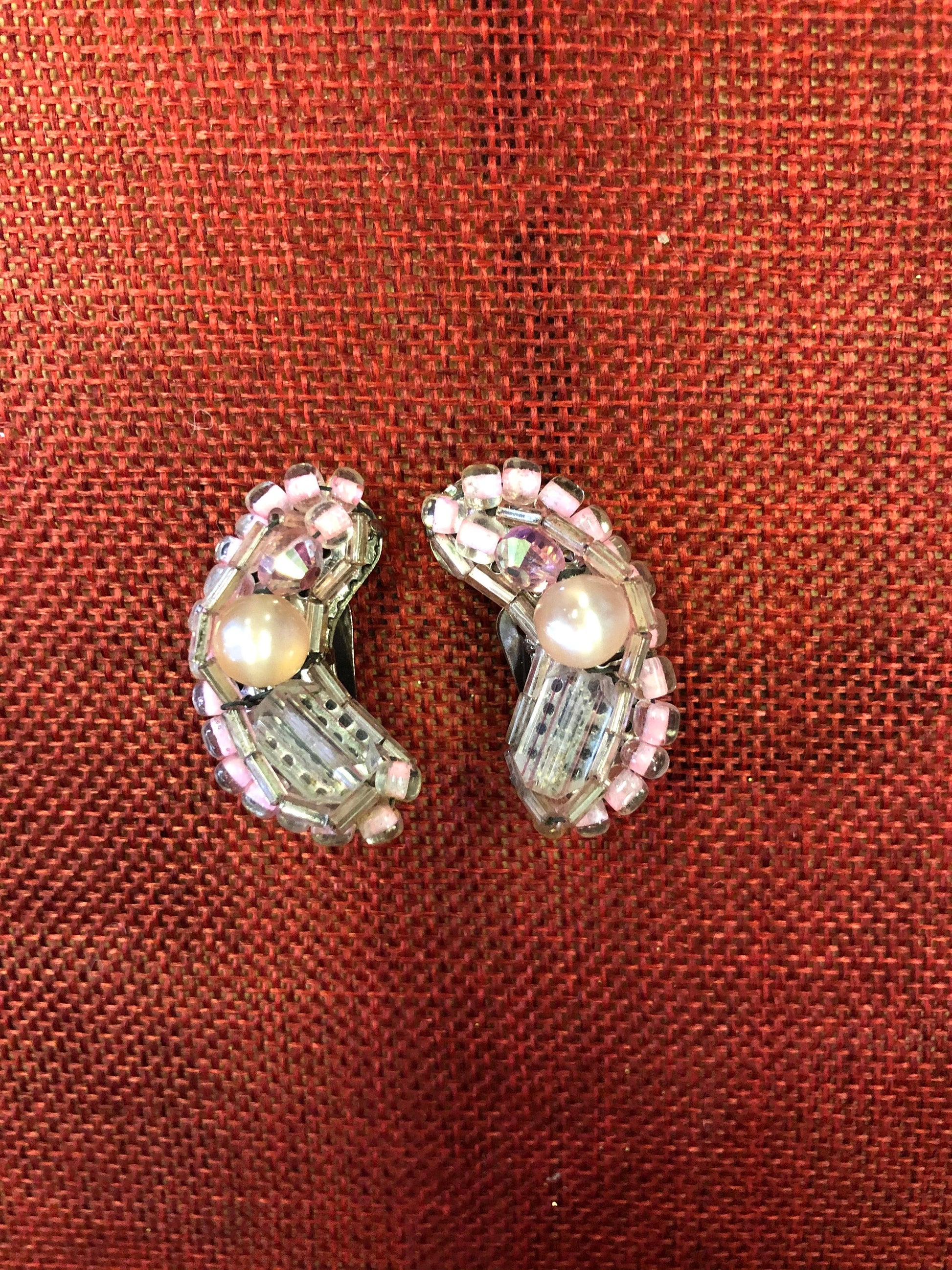 Hobé clip-on earrings with a wonderful assortment of crystal, glass beads and a pearlized ball. These are a great find and a perfect gift for those who love pink!