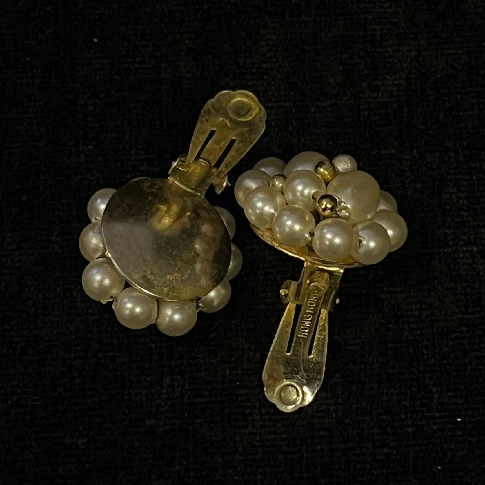 Beautifully adorning your ear, these clusters of cultured pearls will catch the eye of the discerning and elevate almost any outfit. Perfect for those who don't have their ears pierced, and those who do, these clip-on earrings are easy to wear and lightweight. Marked "Hong Kong," the back has a clasp that still snaps into place for a firm hold on your ear, which isn't painful. The Pearls are all wired in place to last for years to come. Pearls are one of the most complementary adornments. They bring out the beautiful natural tones.