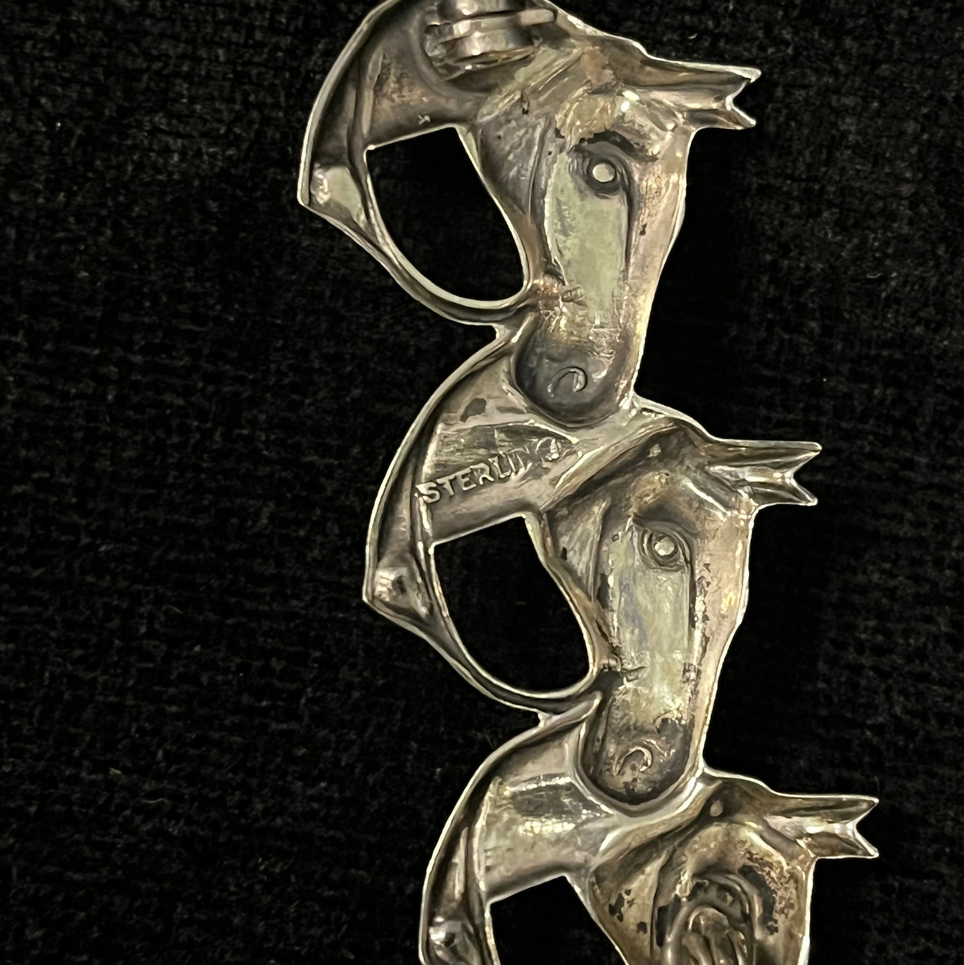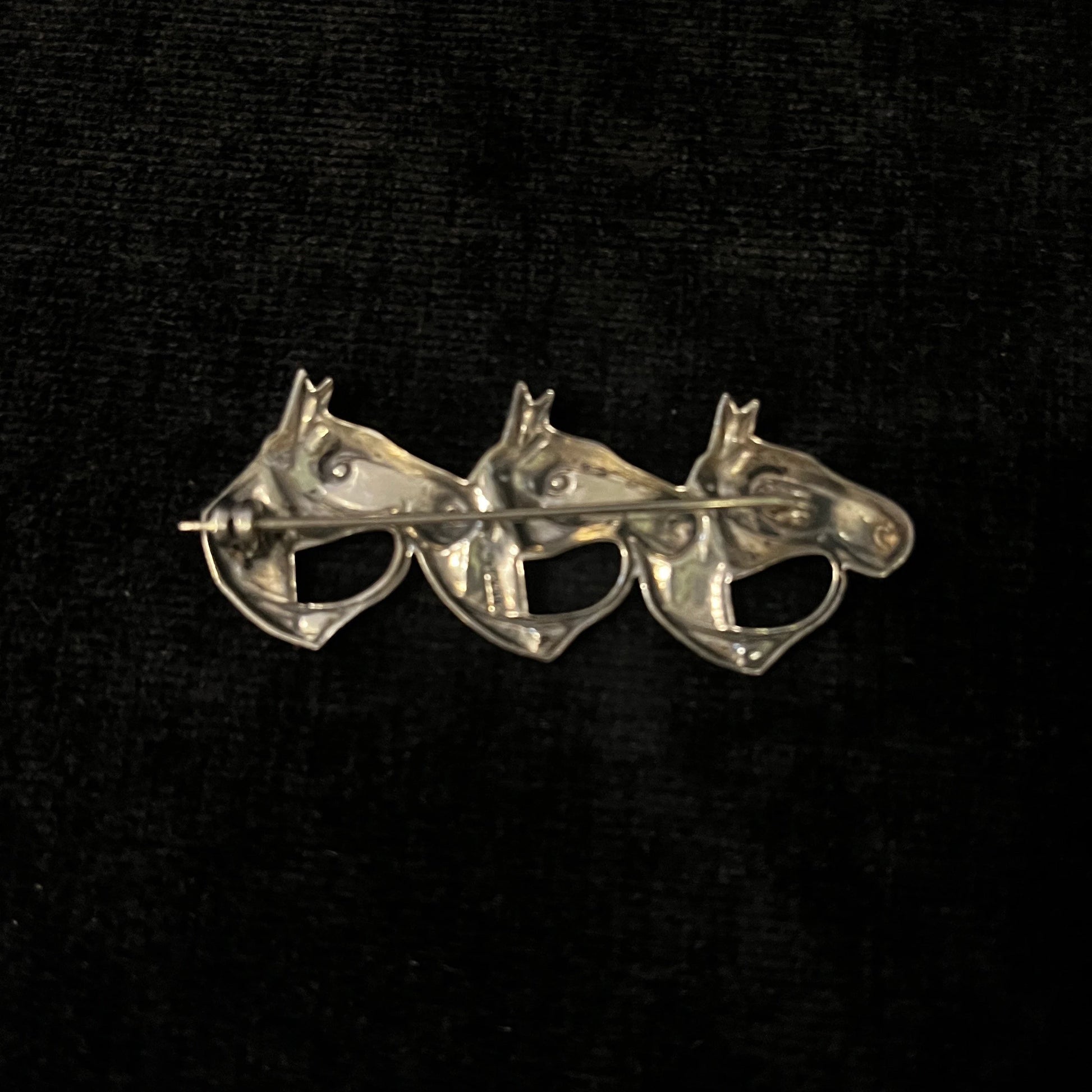 Horse Head Brooch, 3 Heads in Row, Sterling Silver Vintage Pin/Brooch