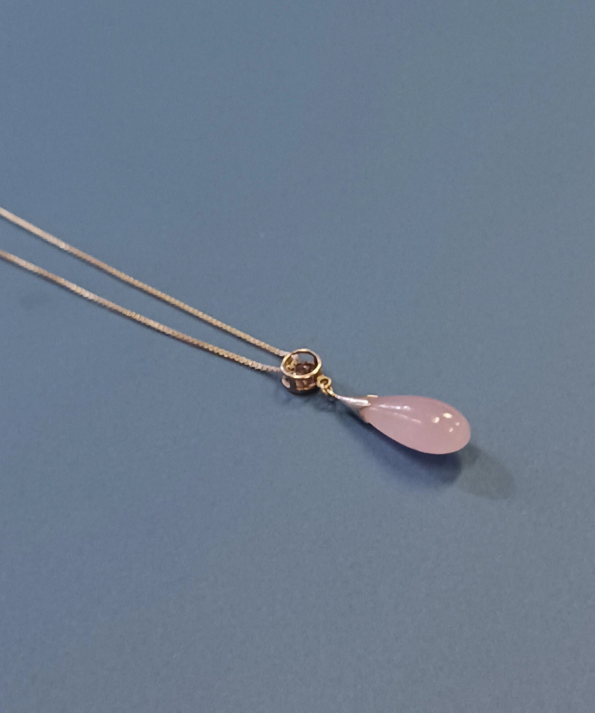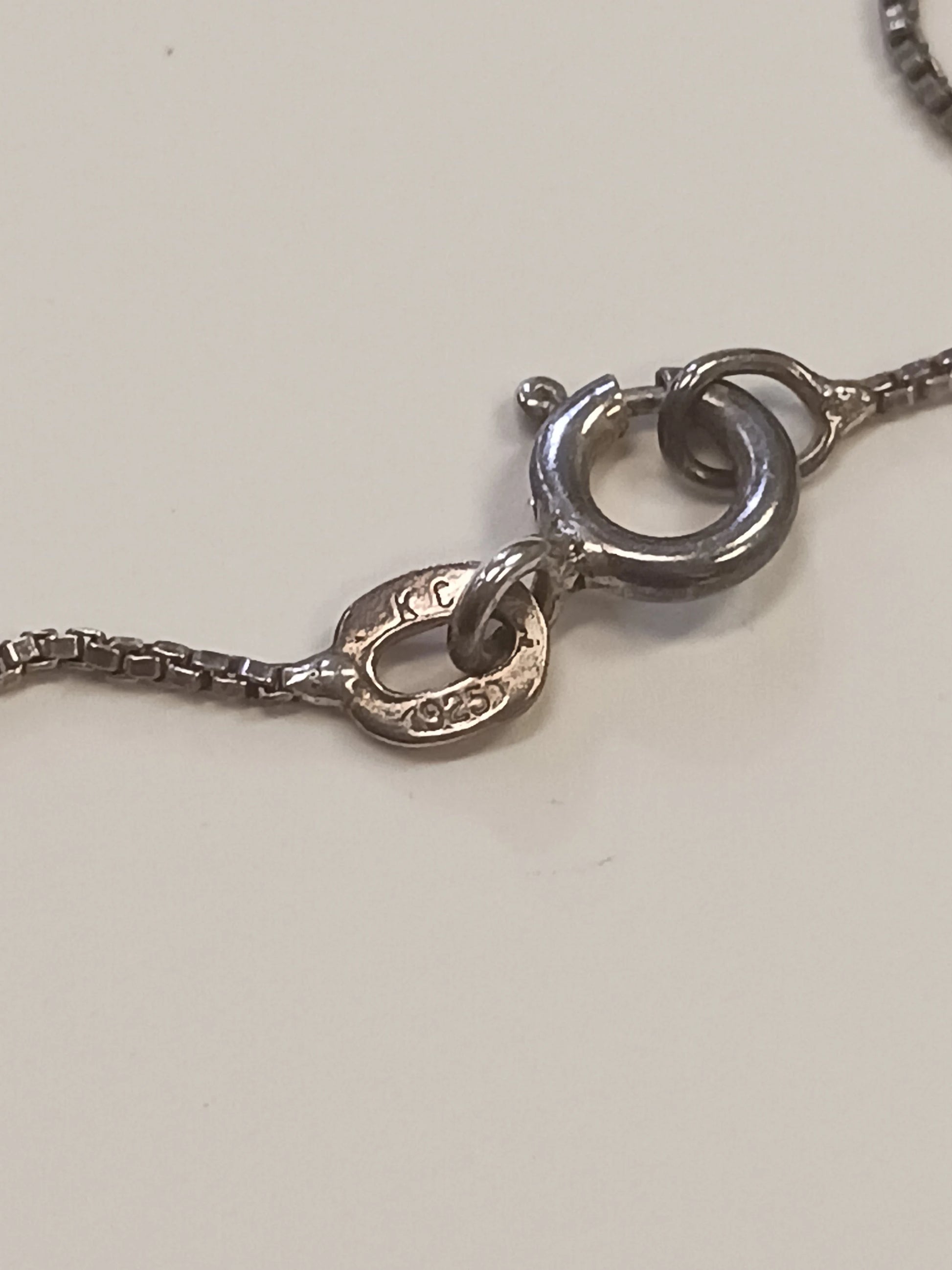 Need a gift for someone who loves the color lavender? Look no further. This beautiful vintage necklace has a teardrop pendant of genuine lavender jade, and a lavender crystal stone set in a circular silver setting above the teardrop. From clasp to pendant tip, this necklace has a length of 10.25", and is in good condition. The silver chain is, also, in very nice condition The clasp is functional and there are no signs of snags in the chain. There is a link near the clasp which reads "925" for the authenticity of the silver (see photos), as well as the maker's mark "KC." This necklace would make a wonderful personal gift to someone you love.