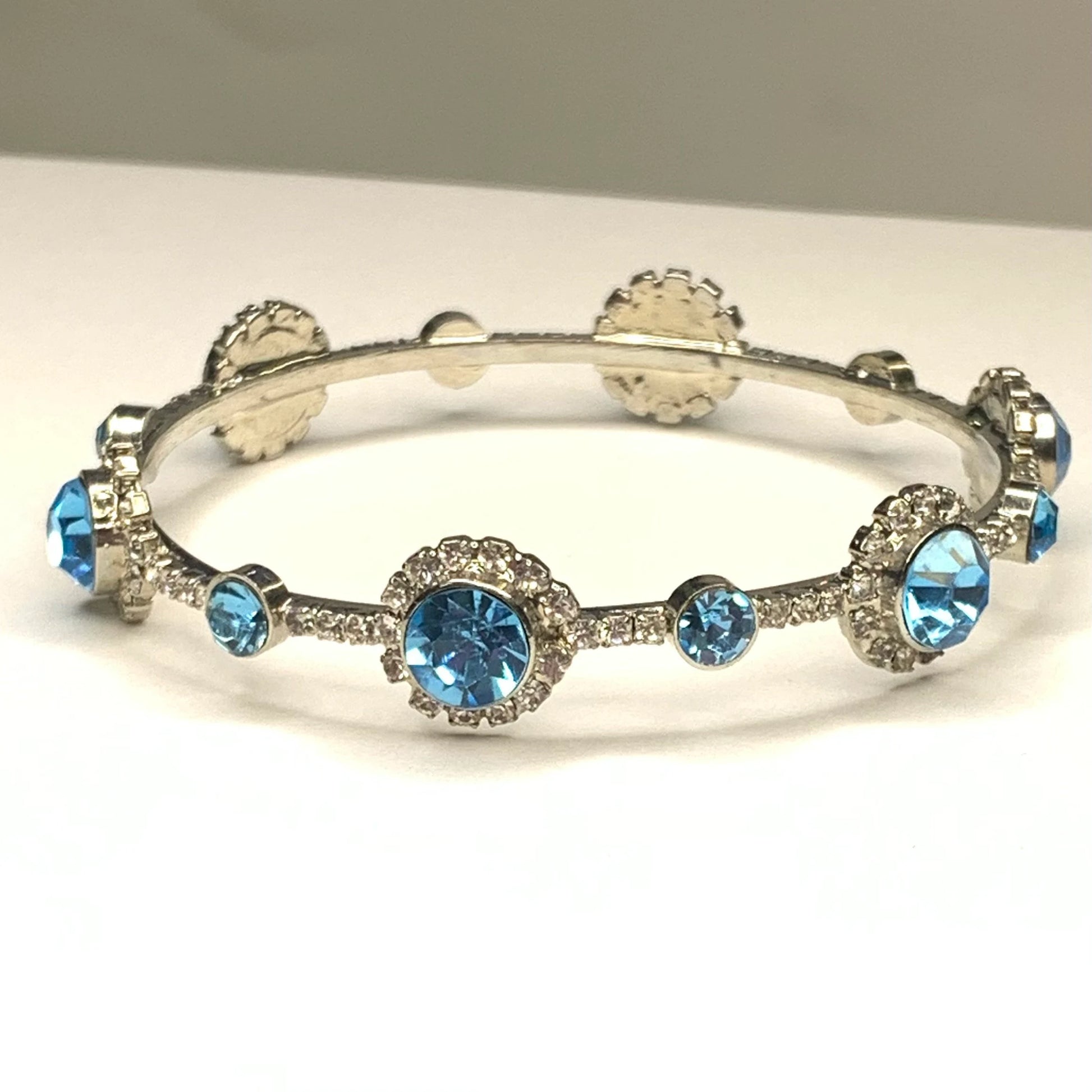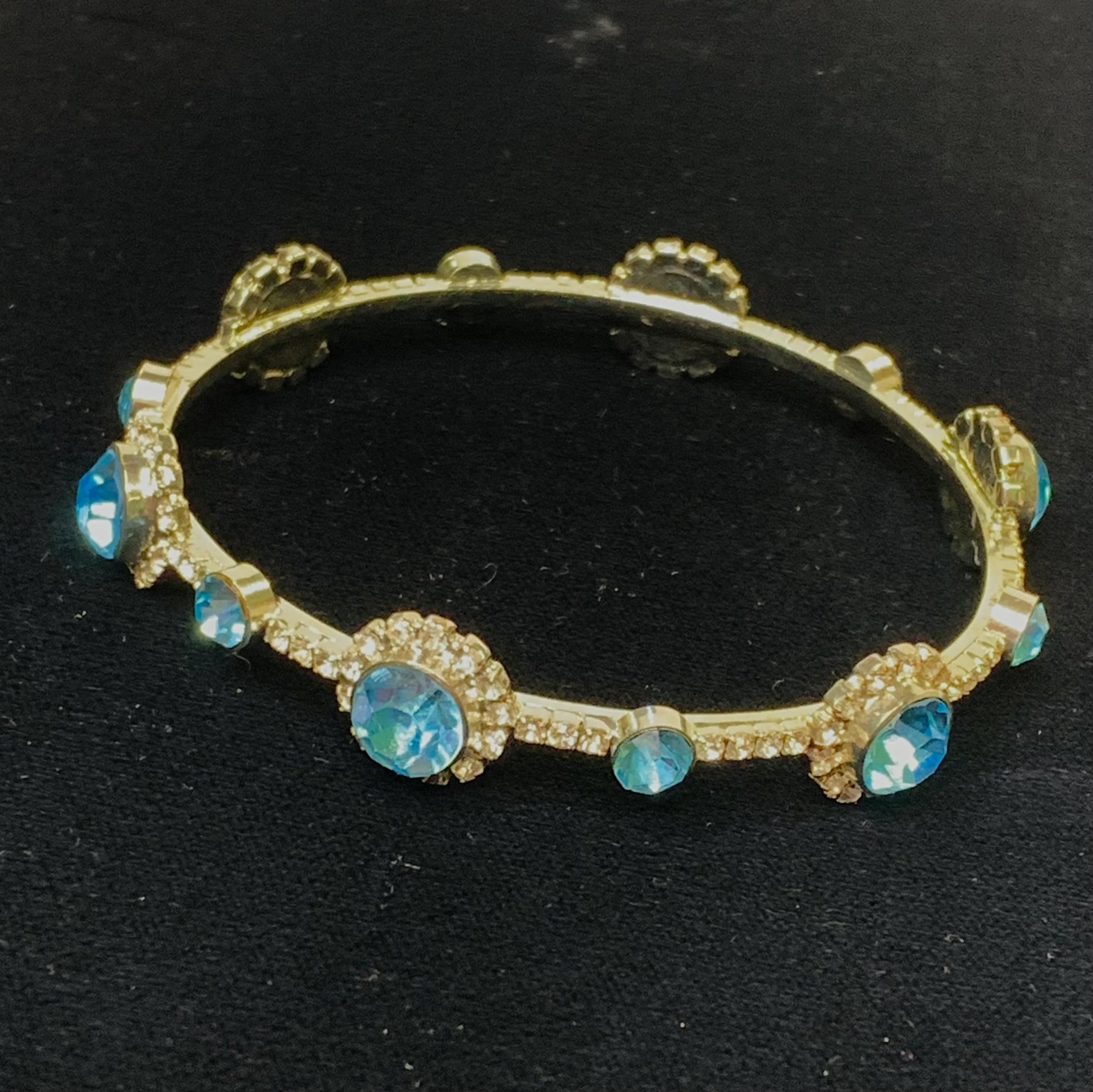 Light Aqua Blue and Clear Crystal Bangle Bracelet