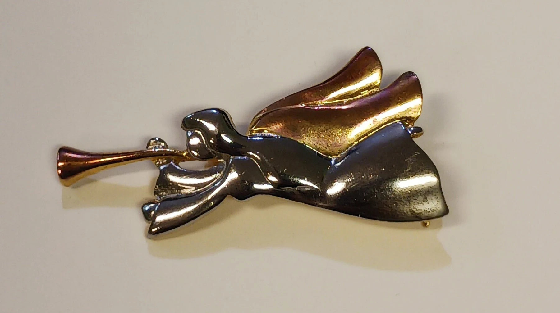 Liz Claiborne Two-Toned Angel Playing a Horn Brooch - Vintage 1980s