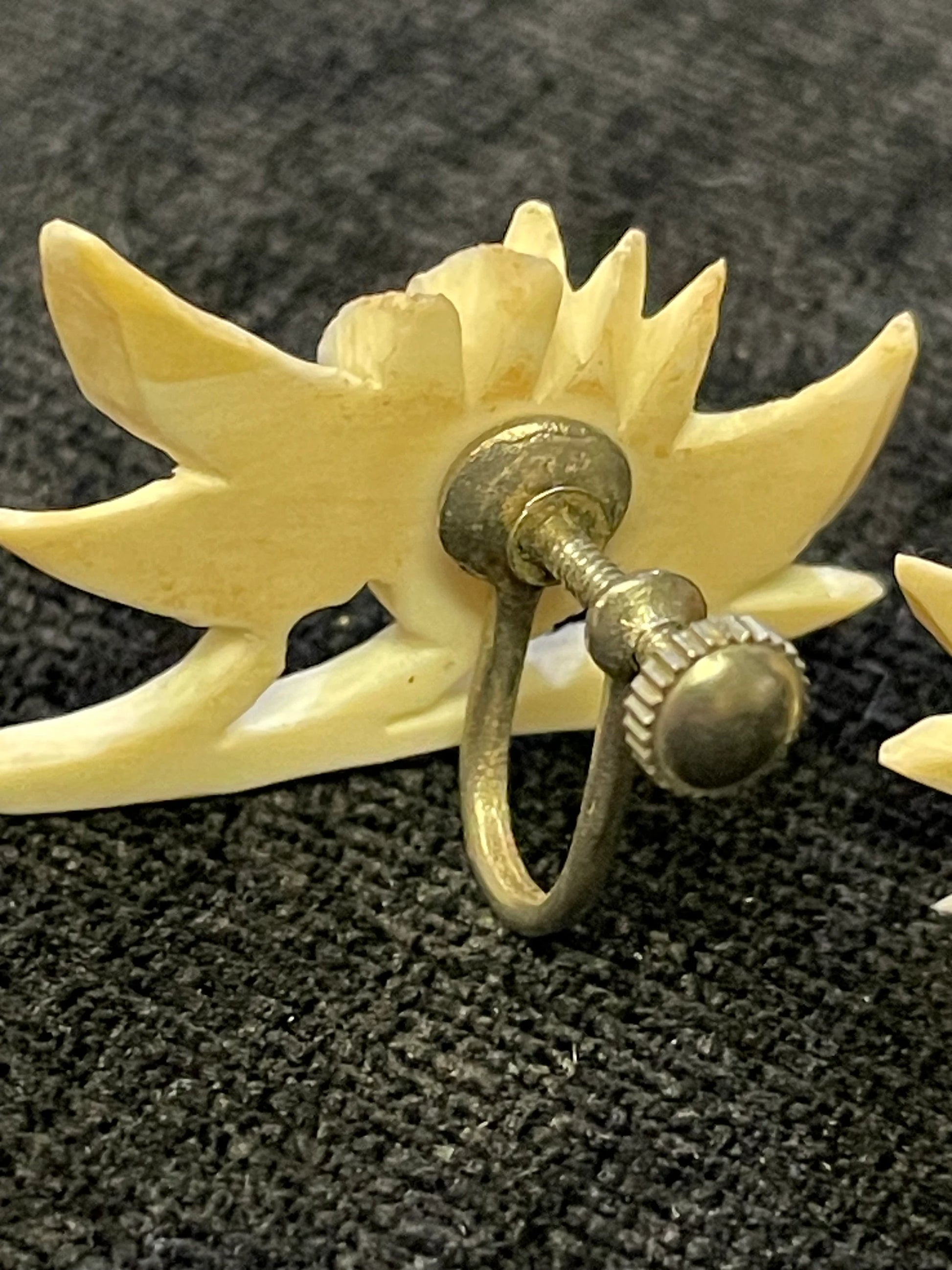 Lotus Flower Carved Earrings - Screw Back earrings Made in Japan - 1930s Earrings