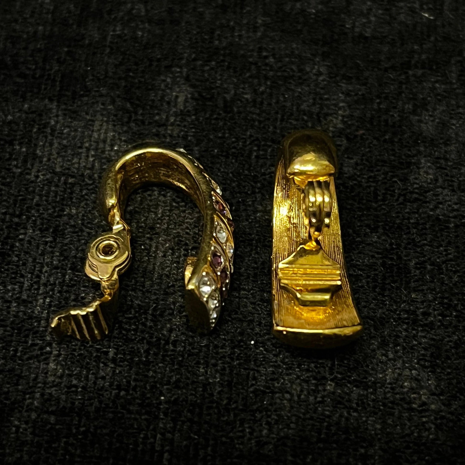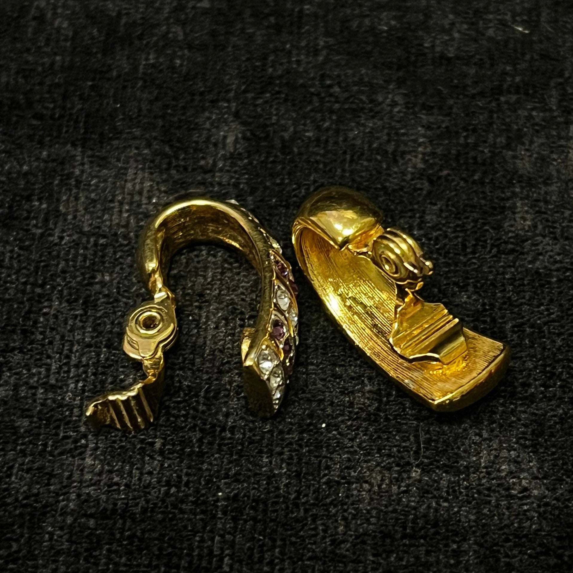 Monet Clip-On Earrings Gold With Crystal and Plum Rhinestone Settings