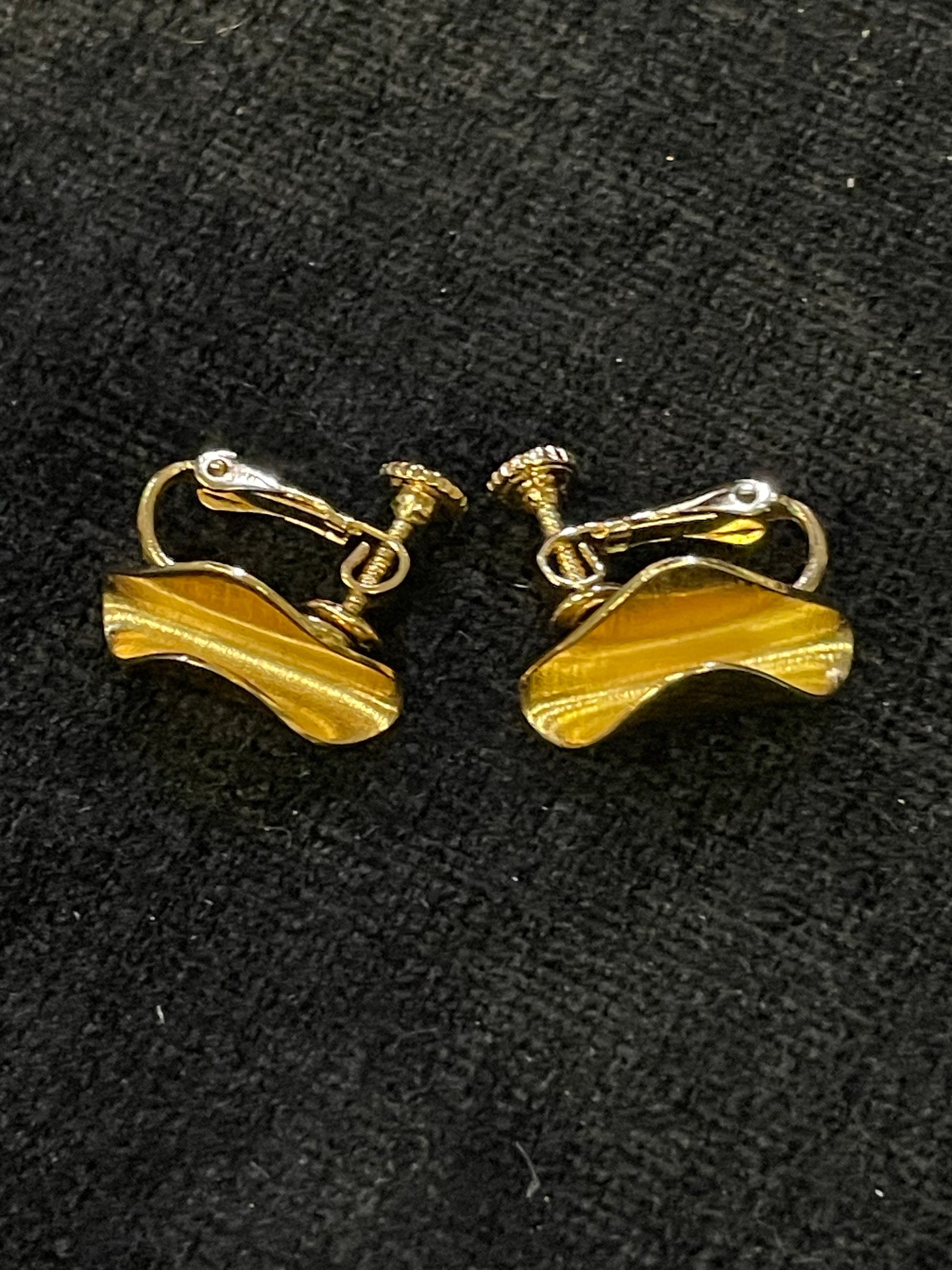 This is a beautiful set of Napier screw back earrings. They feature delicately folded gold-tone metal and are gently held in place by a screw which can be adjusted. They are perfect for the gal who wants to be noticed. They are a nice size measuring at .75" across. They are so convenient to slip off to answer the phone or put on a scarf.