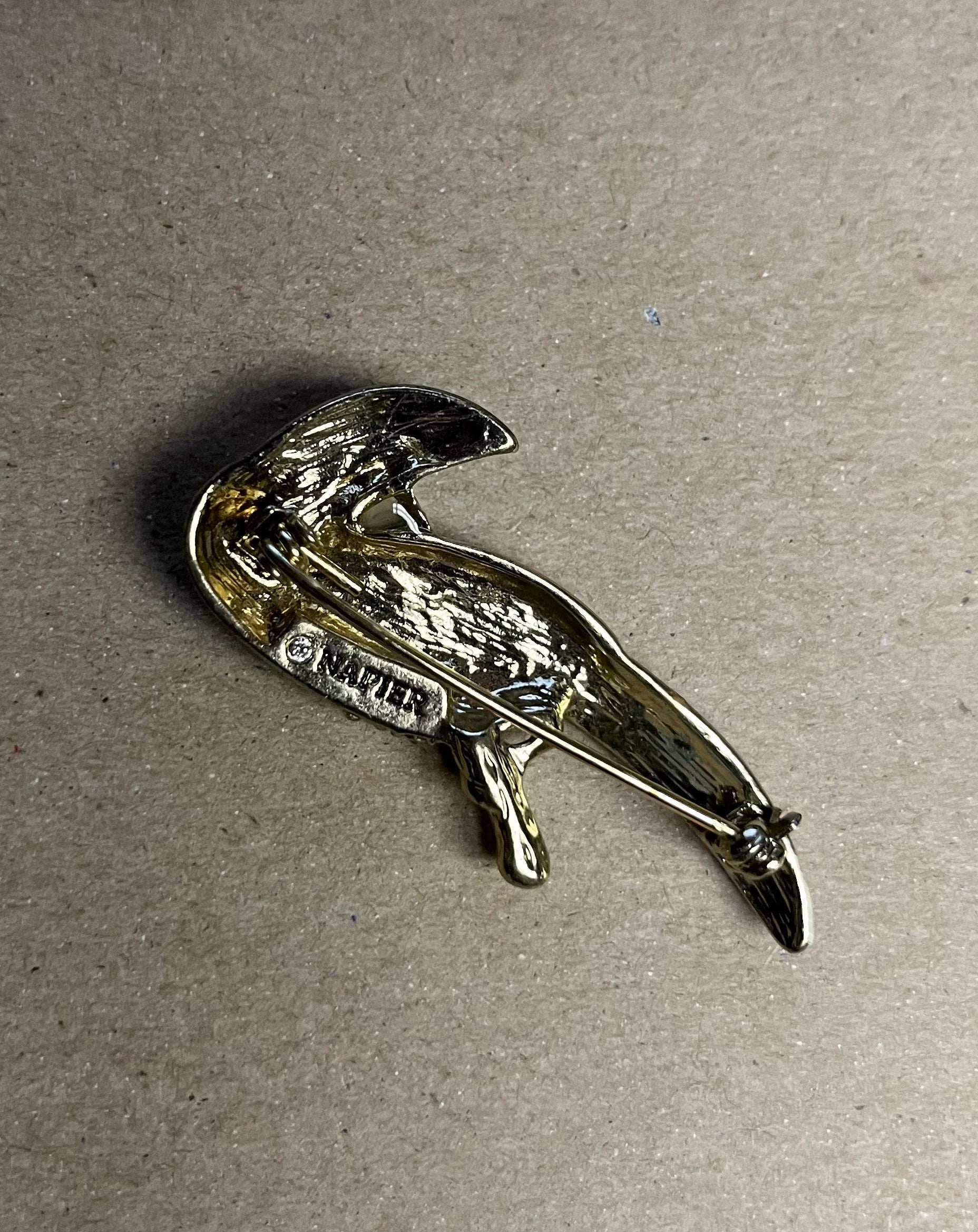 Napier Toucan Brooch- Gold-tone Base with Enamel, Rhinestones, and Thermoset Settings - Florida Brooch - Toucan Pin - Unusual Settings