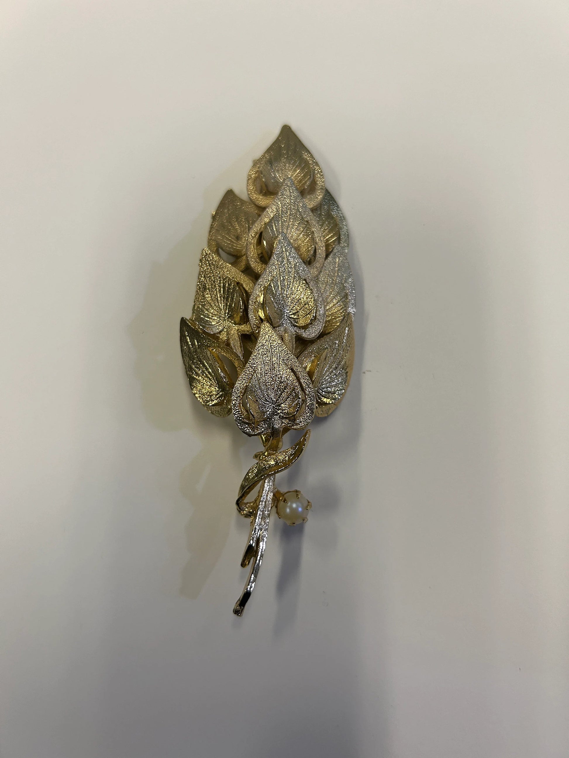 Puccini Original Golden Leaves Brooch - Faux Pearl Accent - Mid Century large 4" Puccini Original Vintage Brooch