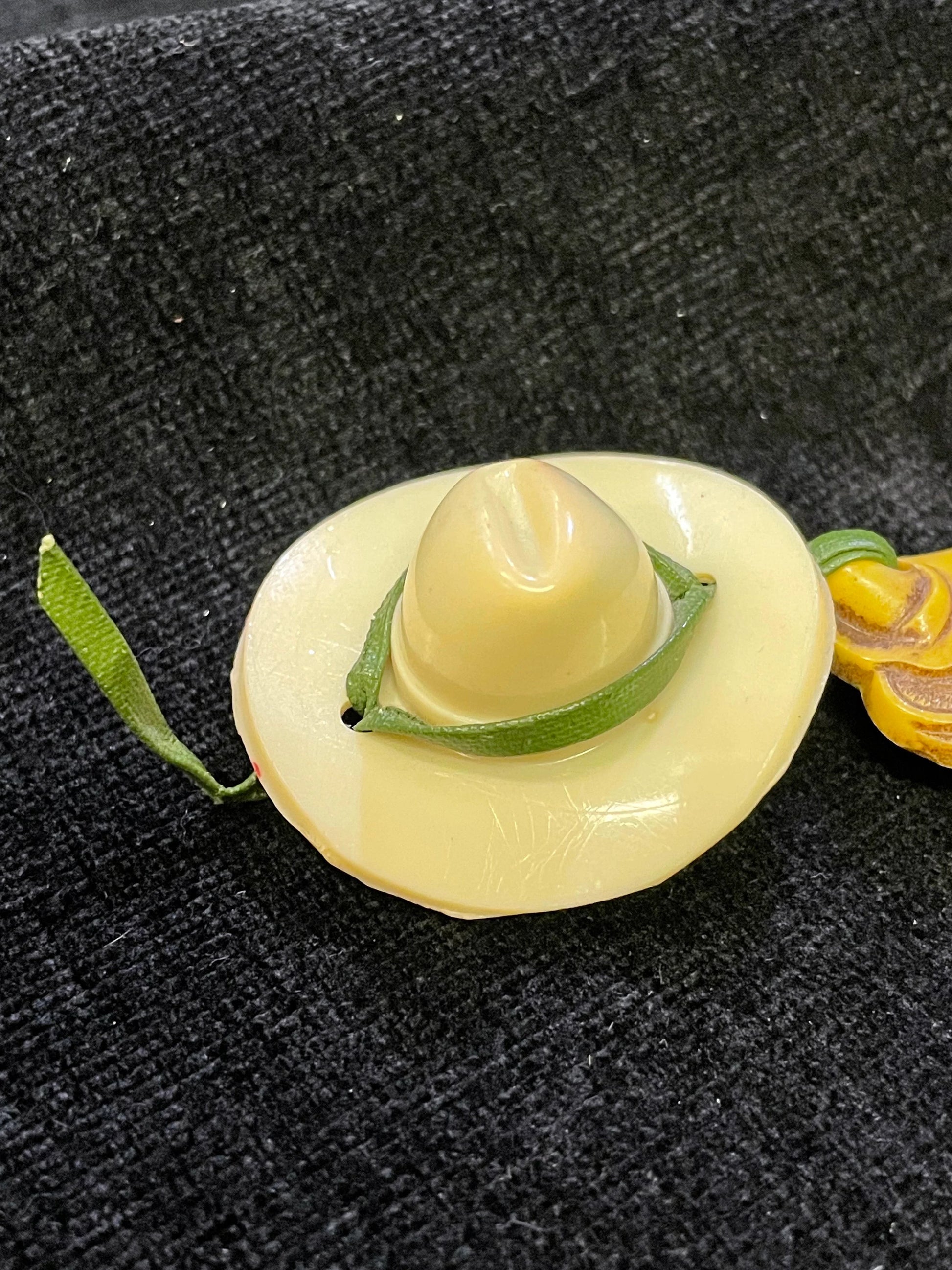 Saddle and Cowboy Hat Celluloid Pin Brooch