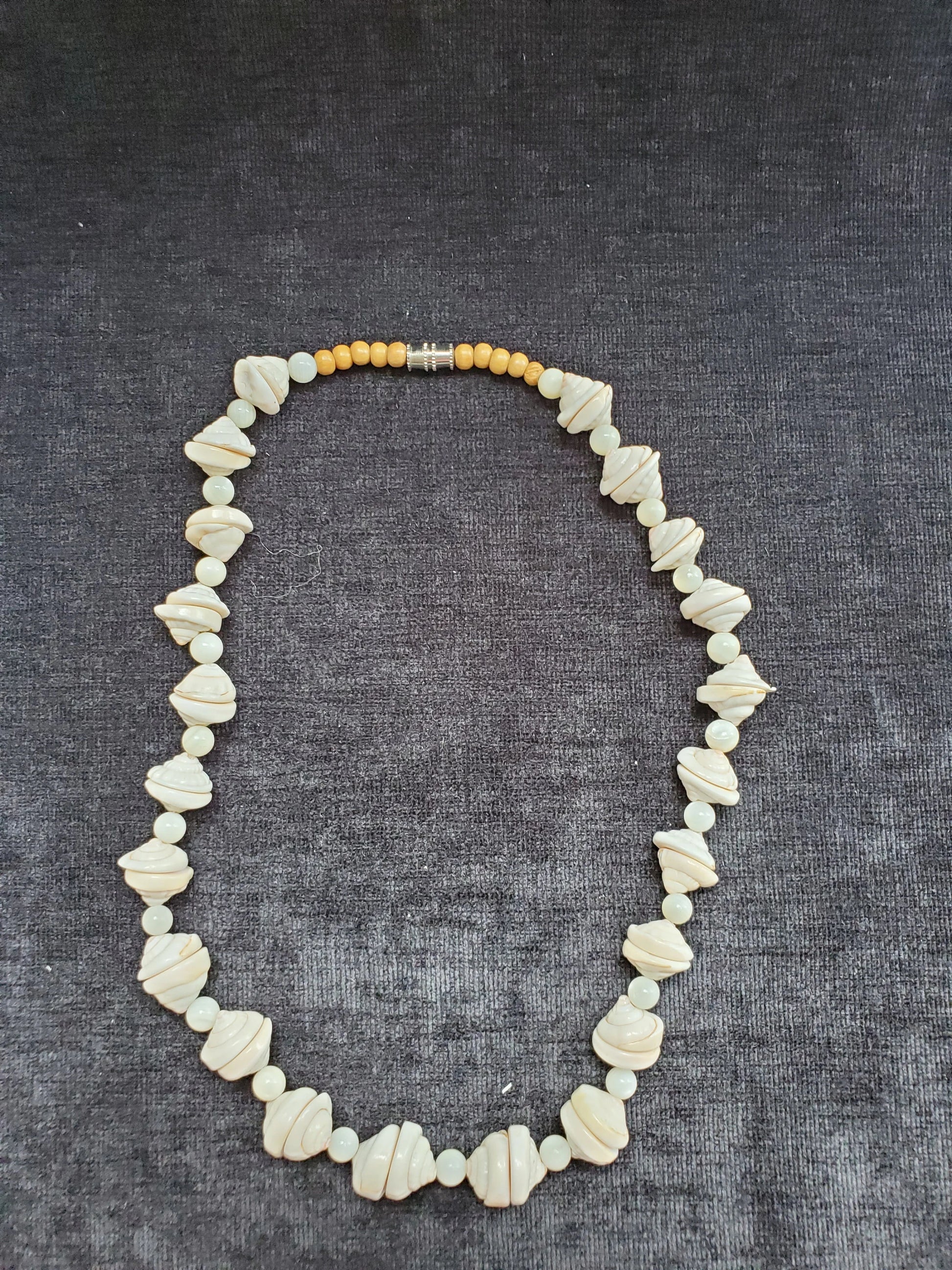 The choker length necklace has a screw barrel clasp and has never needed to be restrung. The necklace is in great ready to wear condition. Hit the beach looking snf feeling like an Island Girl.