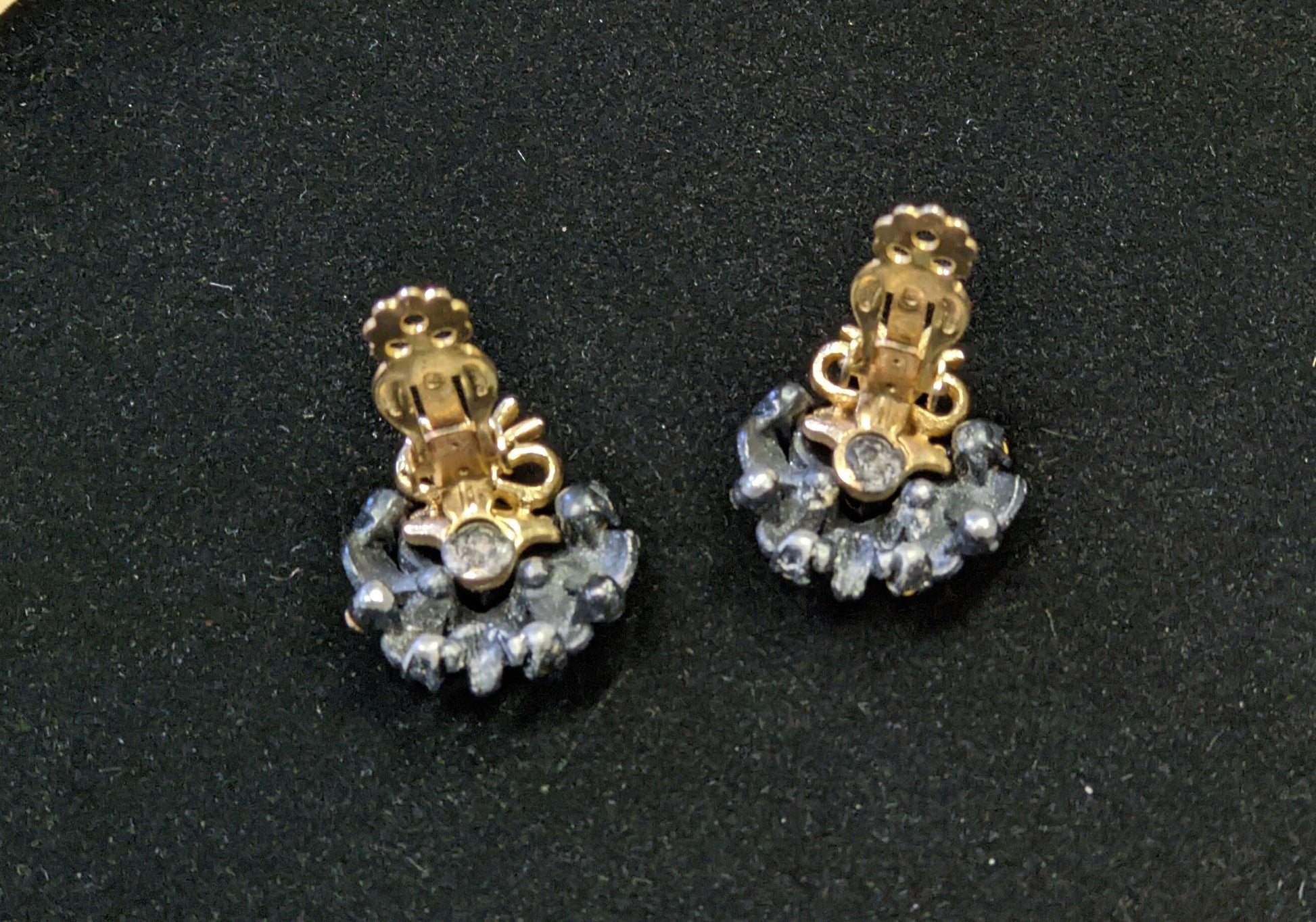 Great to bring some sparkle into your look, and absolutely Wedding Perfect! These vintage clip-on earrings are in wonderful condition. They do not have a makers mark, but the construction and crystals being prong set, suggest they were made by a reputable 1970s company, which used paper hang tags to mark their jewelry.