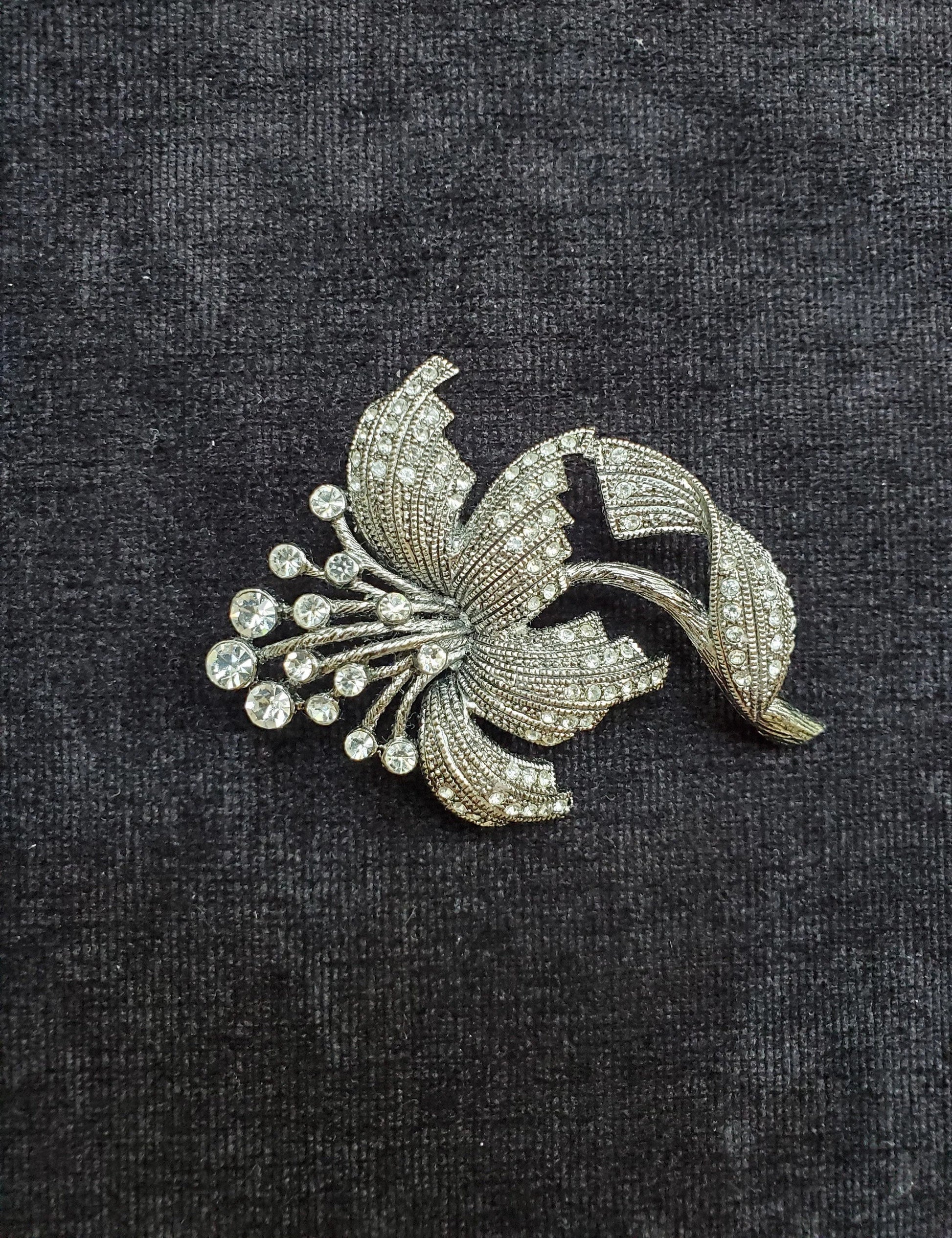 Spectacular Lilly Flower Brooch in Crystal and Silver - Vintage Art Deco Brooch Vintage 1930s Jewelry