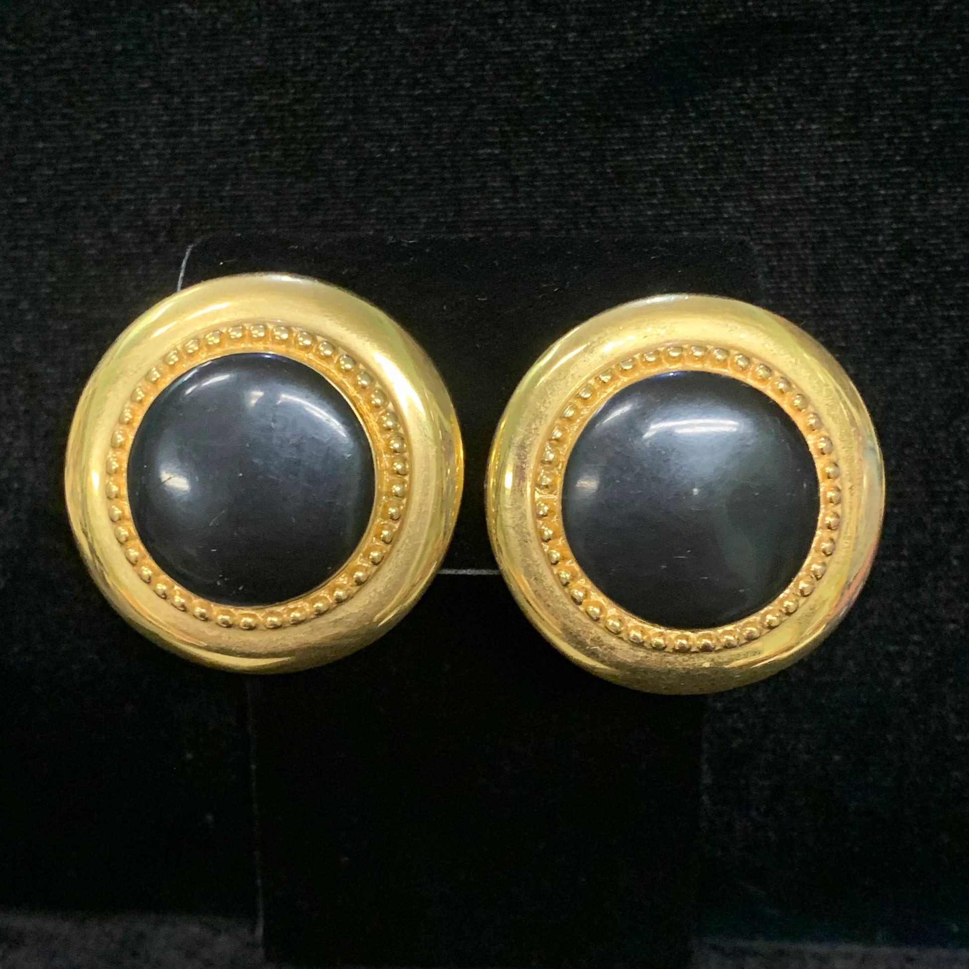 St. John Black and 24k Gold Plated Circular Clip-On Earrings