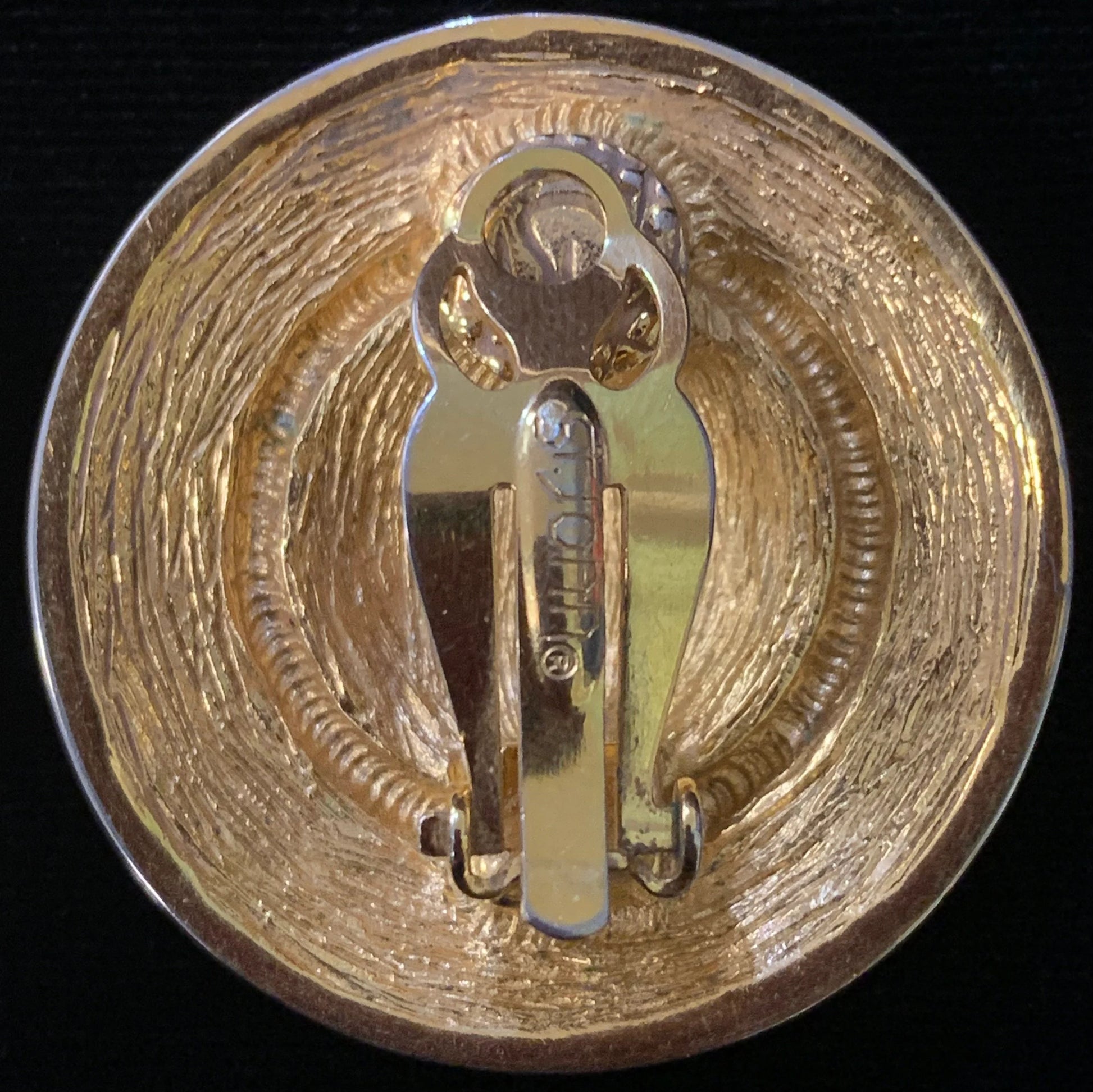 These beautiful 24-karat gold plated clip-on earrings by St. John Knits are the perfect accessory to add flare to your favorite long black dress.