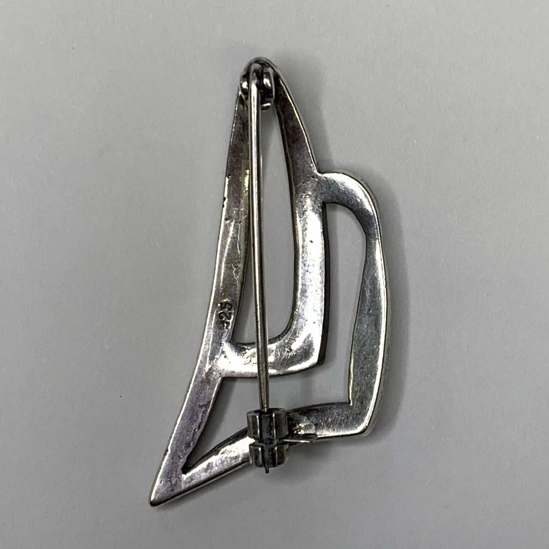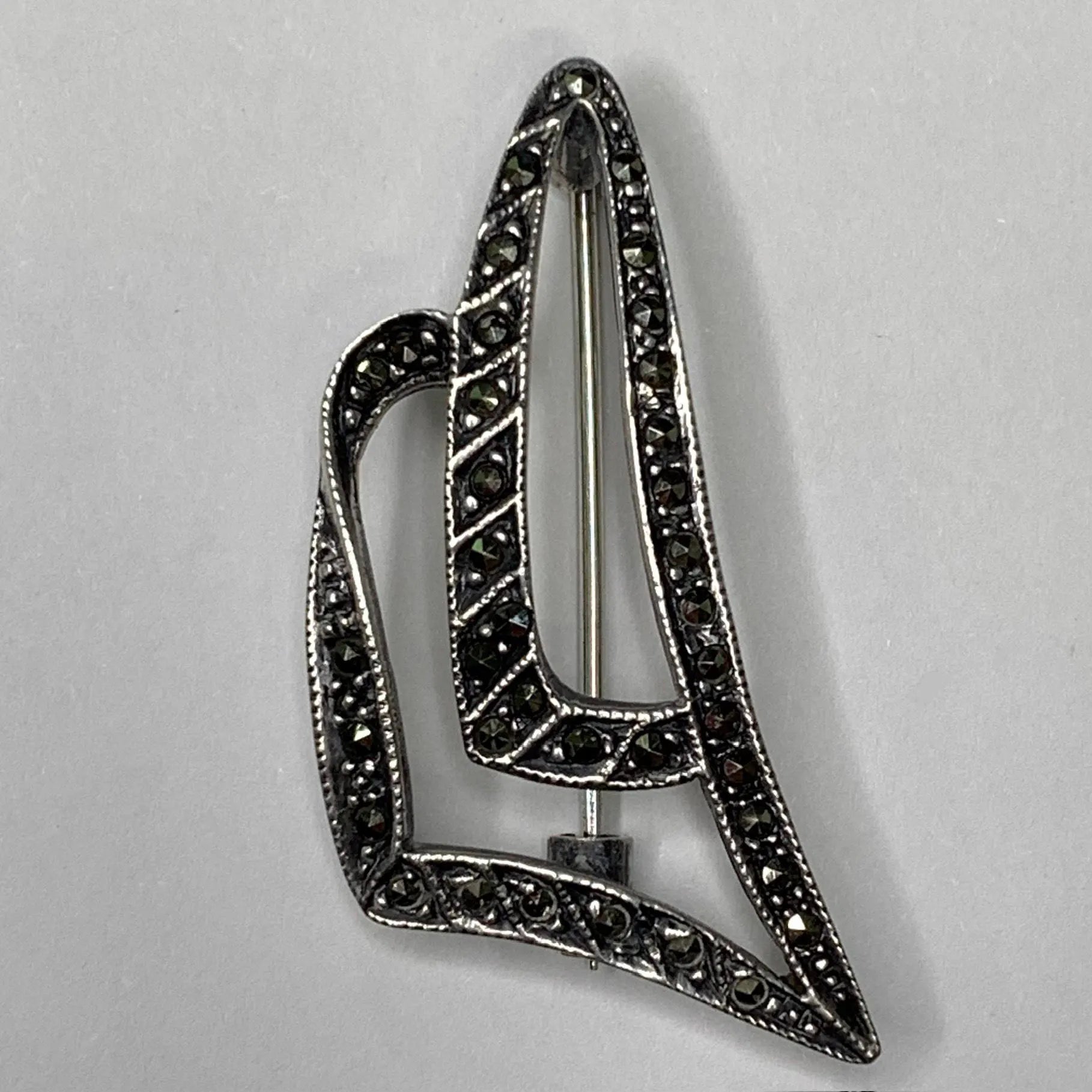 Sterling Silver Abstract Shape Brooch with Marcasite Settings - Mid Century Modern .925 Ladies Pin - Perfect Hat Decoration
