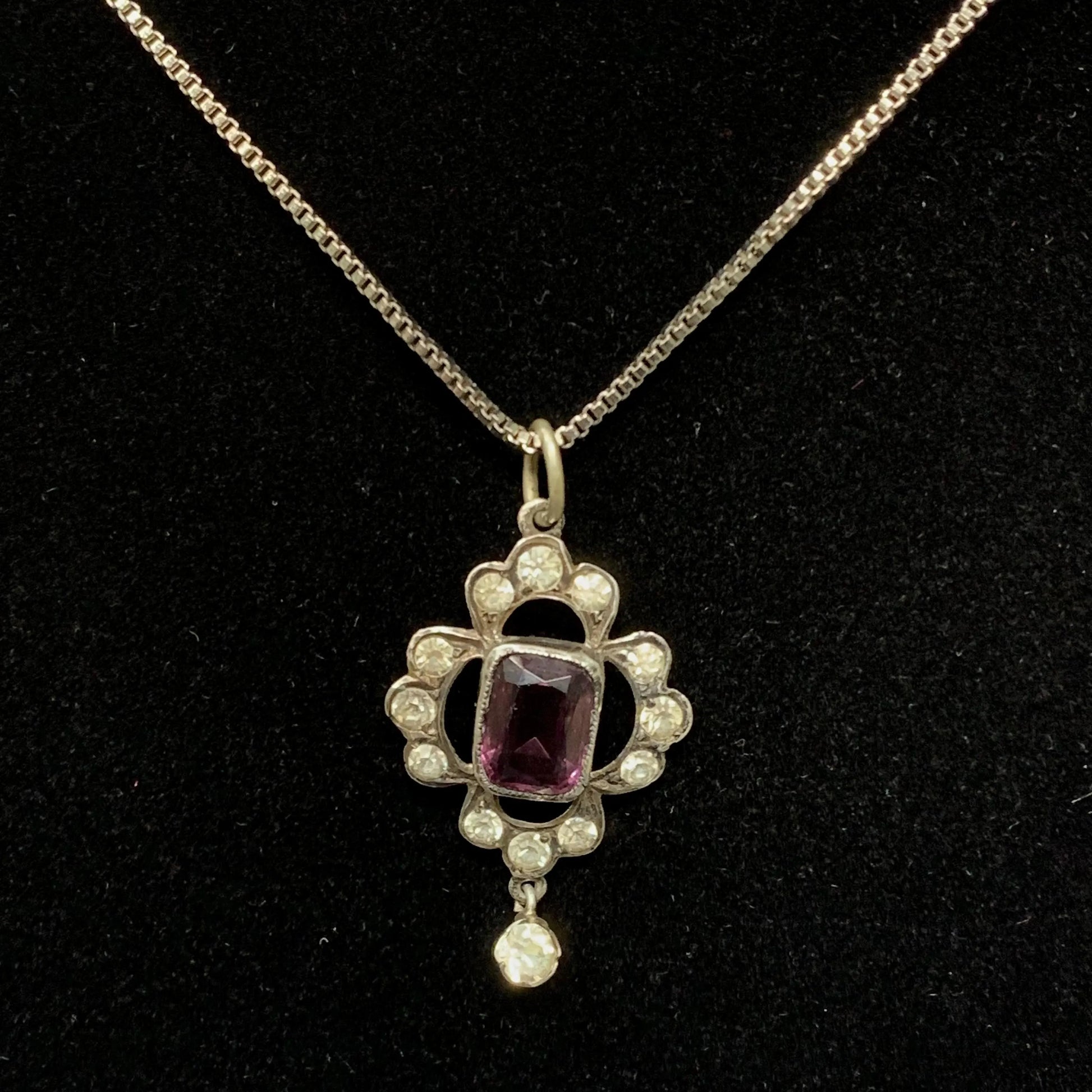 Sterling Silver Pendant with Amethyst and Austrian Crystals on Silver-Tone Necklace Chain - Lovely Lavalier Amethyst Pendant Necklace