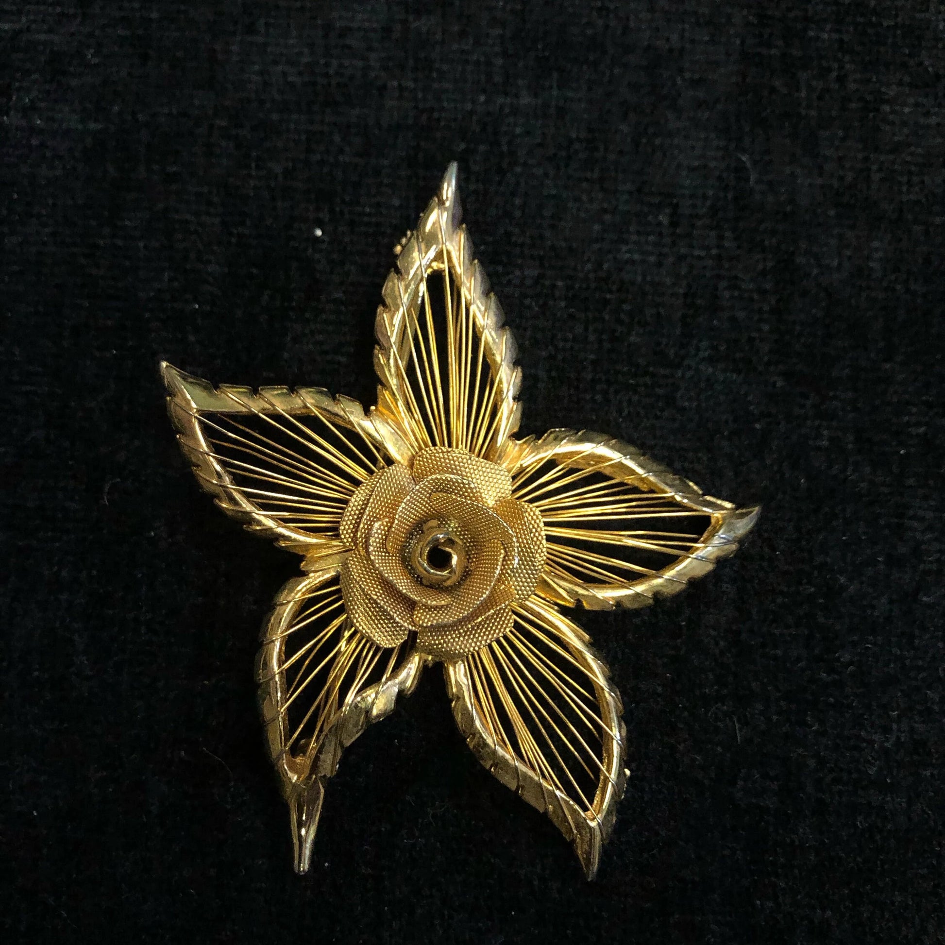 Sweet Spun Wire Gold Rose Pin/Brooch