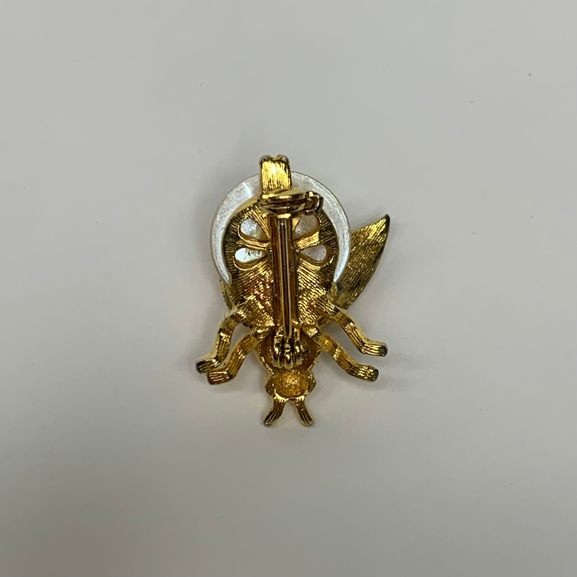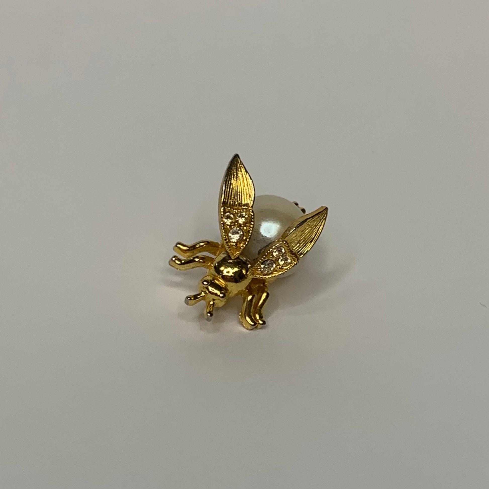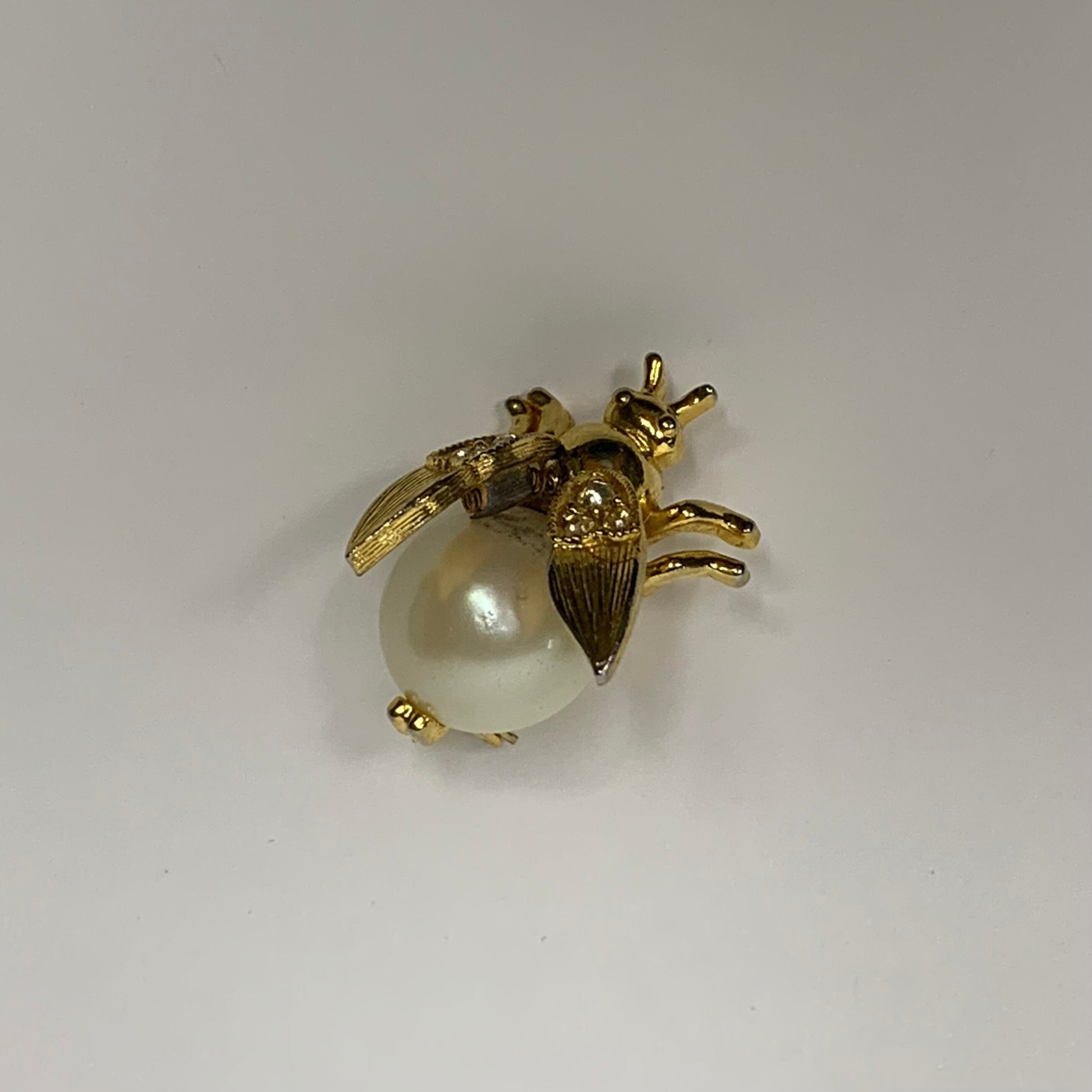 This stunning gold-toned bee with the fat round pearl body pin is the perfect accessory for your favorite straw hat, or add it to the shoulder of your sports coat, everyone will notice, but please tell them, no swatting the bee!. The wings tremble and are attached by springs. The piece is in excellent condition, and the wings move perfectly. If not for you, it might be perfect for the gardener in your life.