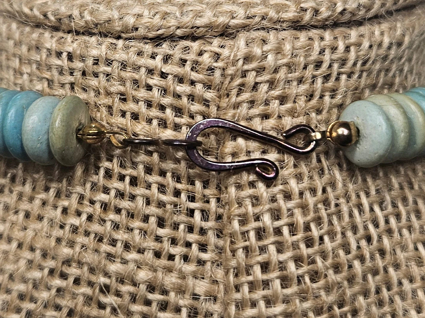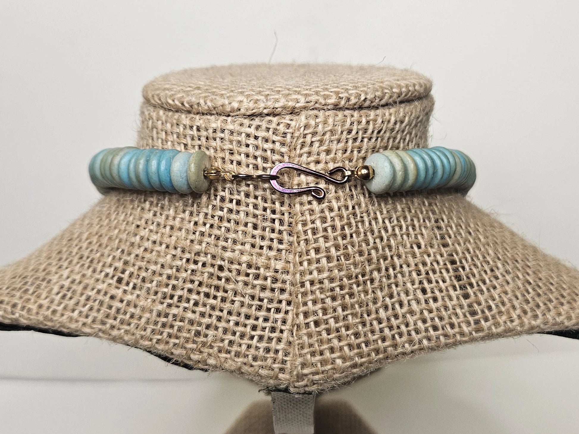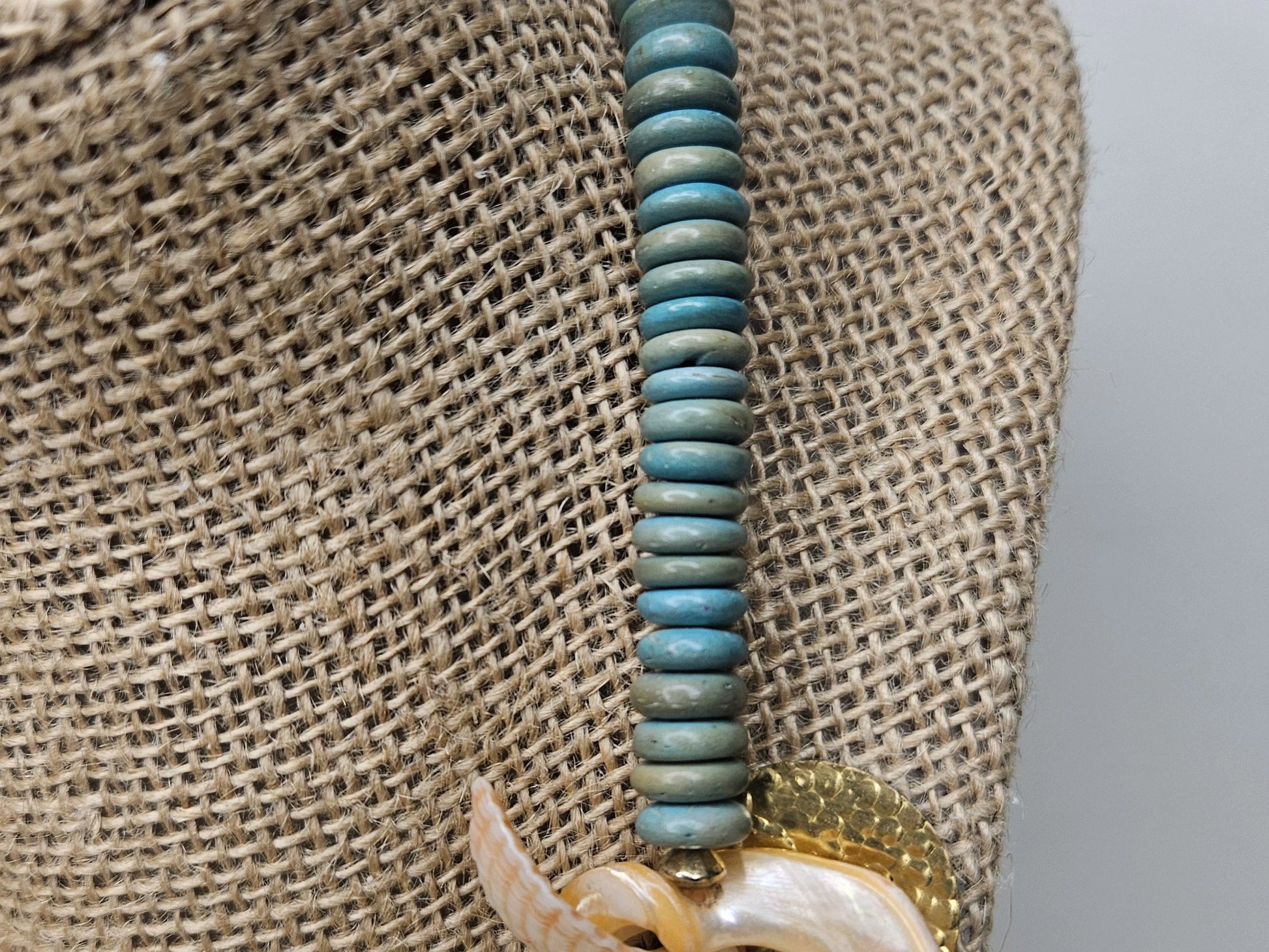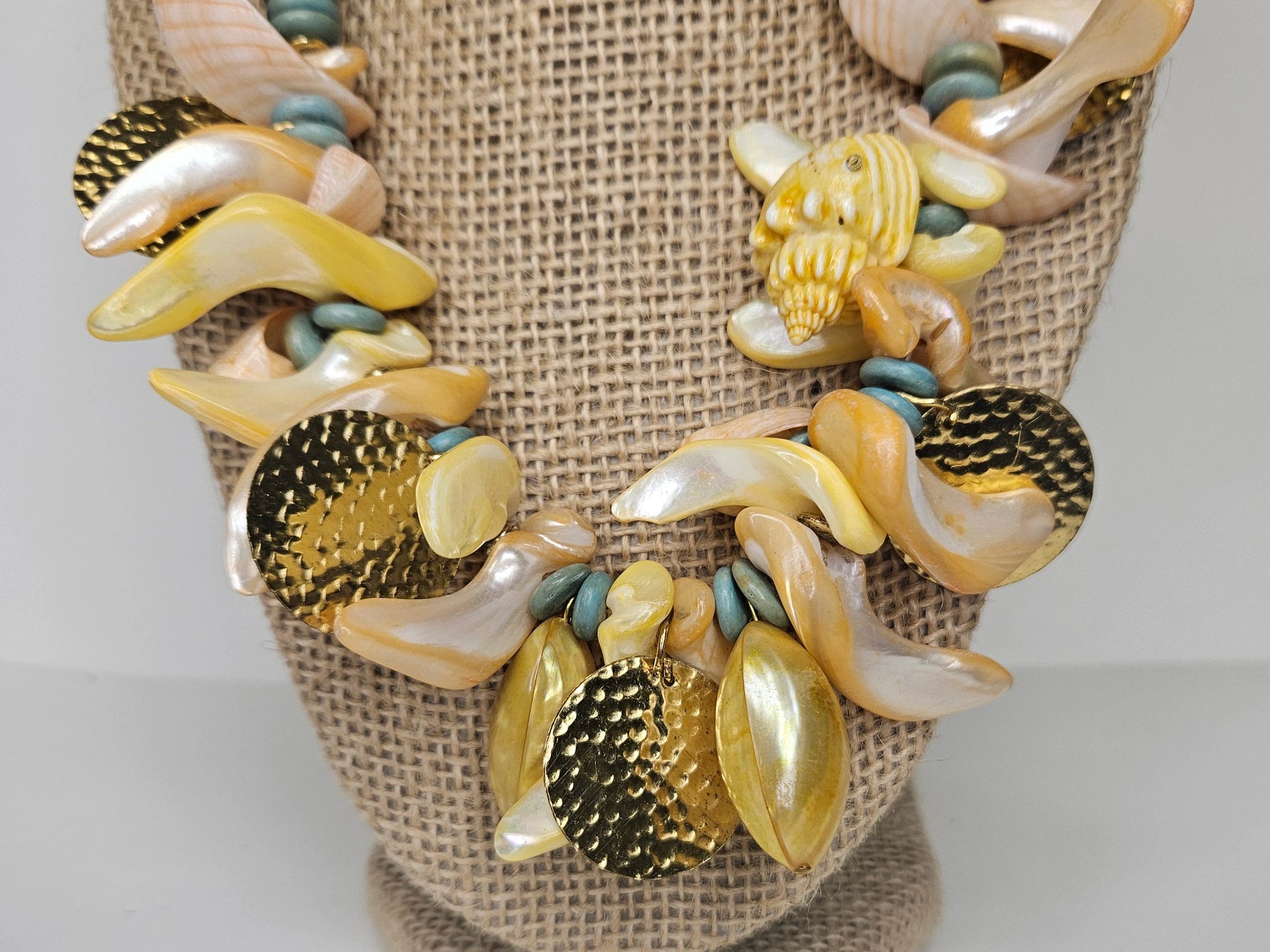 Tropical Turquoise Beaded Sea Shell Statement Necklace - Gold Details Peach Colored Shells
