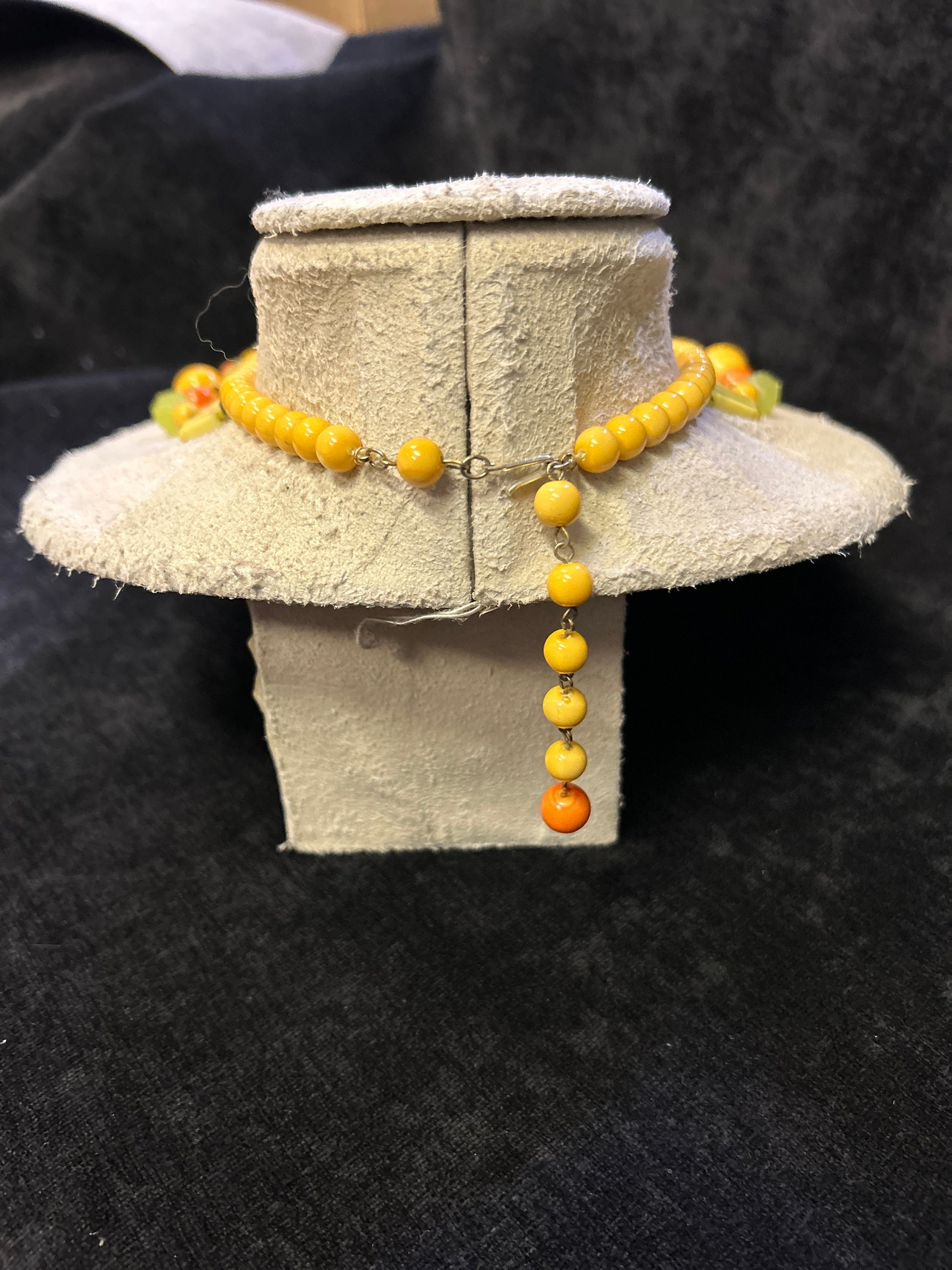 Vintage Boho Beaded Drop Necklace in Tropical Yellows, Orange and Lime