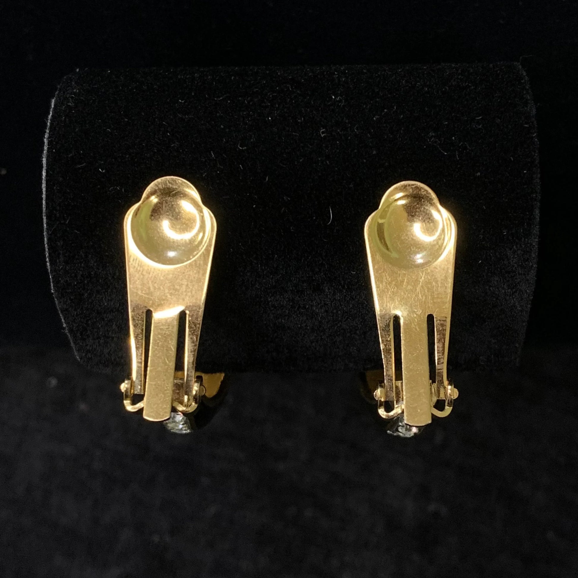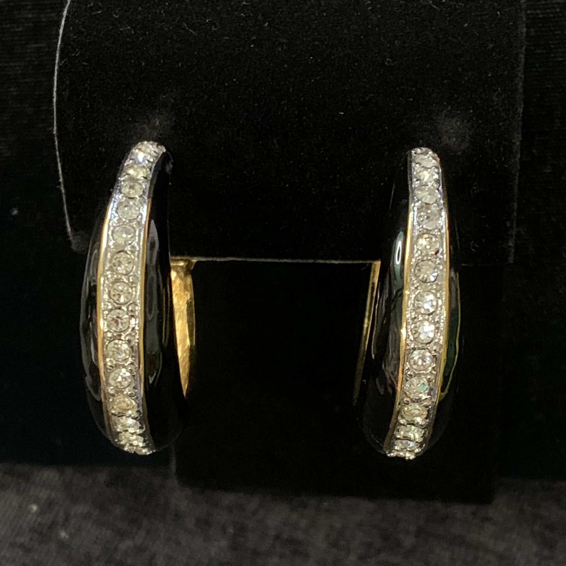 Vintage Essex Clip-On Earrings - Black Enamel and Rhinestones on Gold Tone