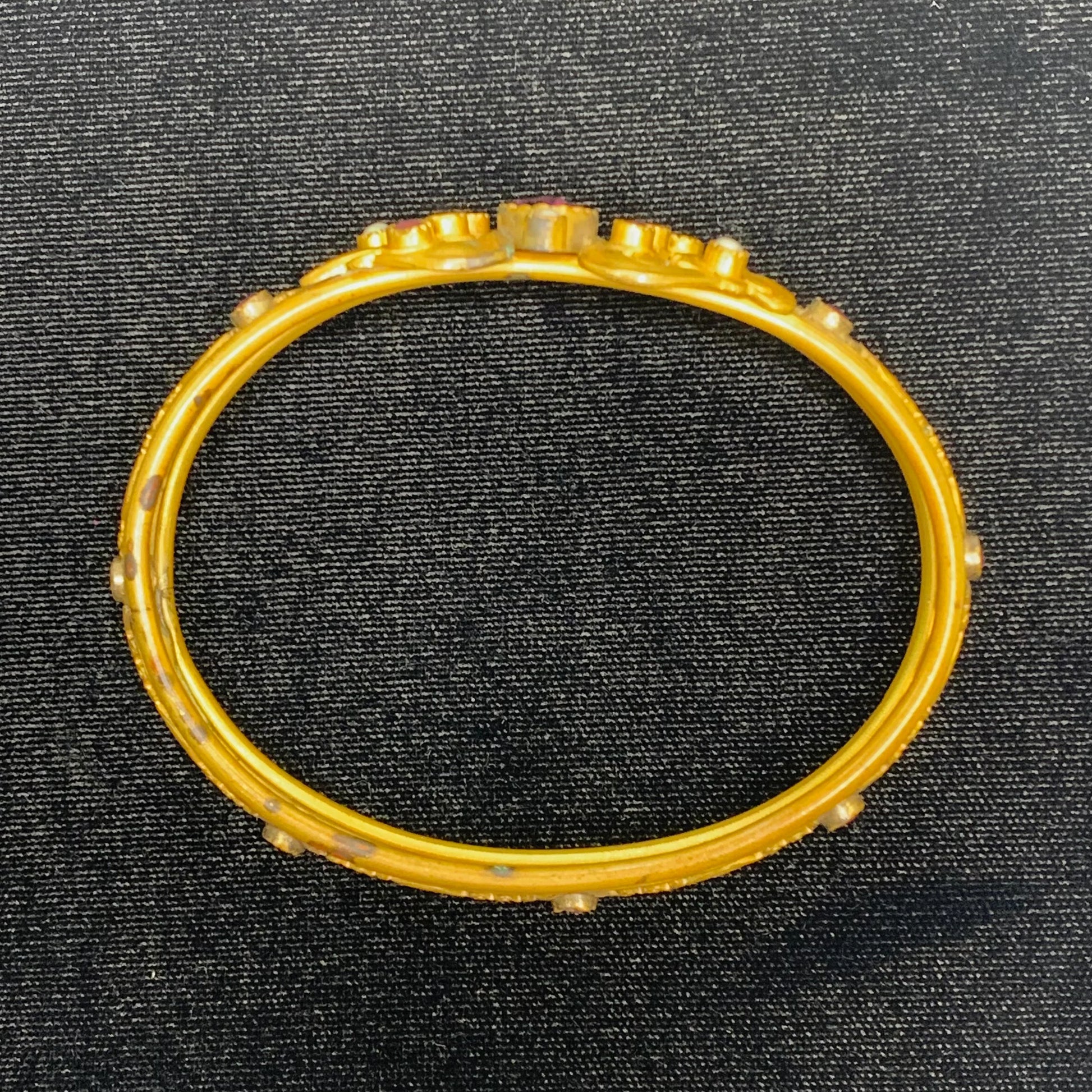 This gorgeous bracelet is the perfect addition to your purple Victorian gown. The detailed engravings on the inside of the bracelet add a sense of romance to this piece. The bracelet is in good condition with some small spots and tarnishing.