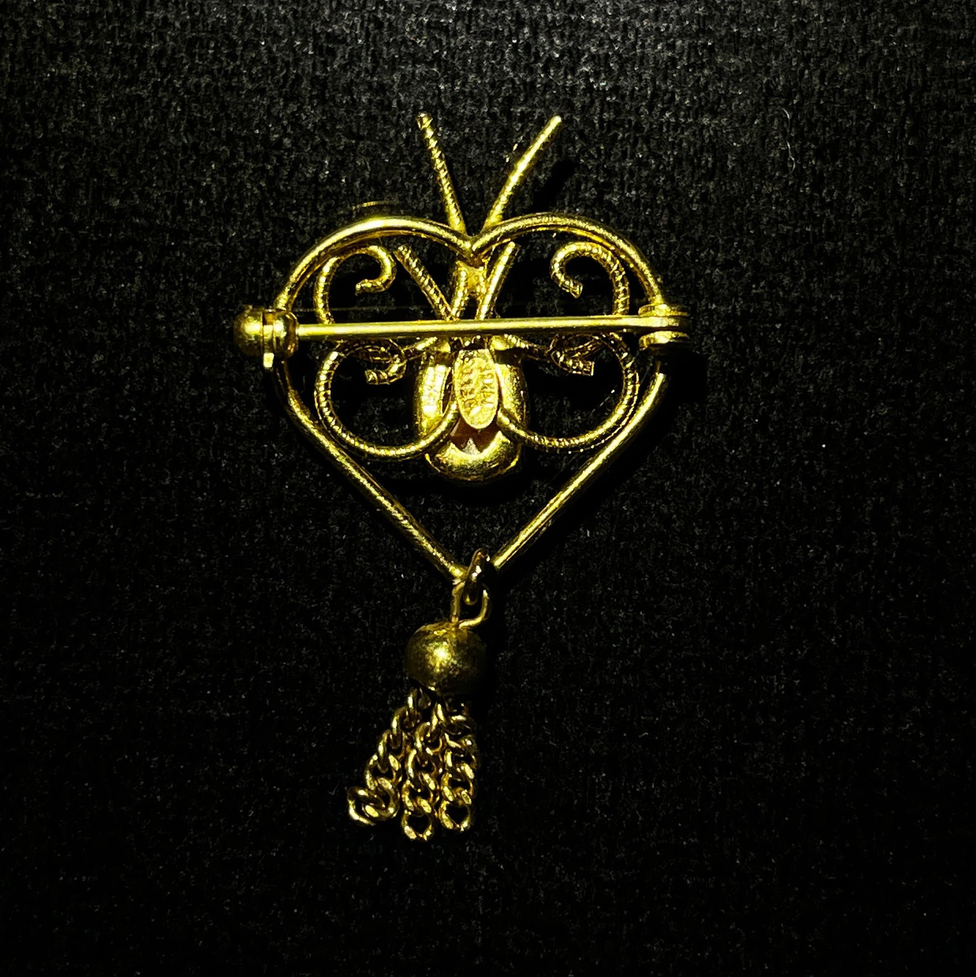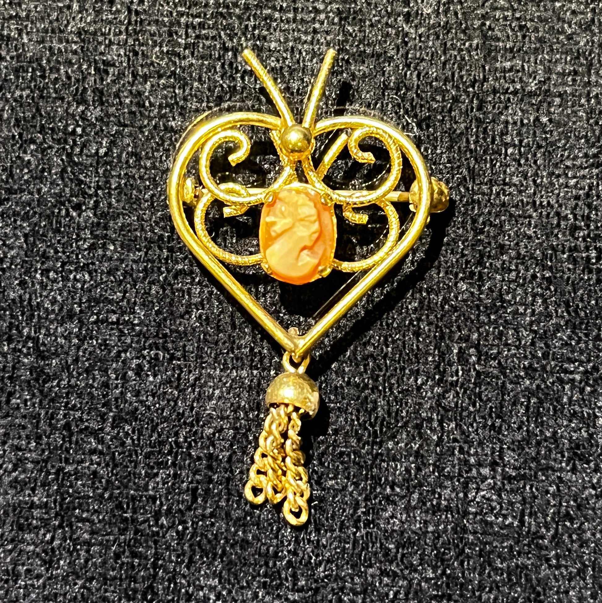 WELLS Mini Shell Cameo Mounted in a Gold Heart Pin - Unusual Shell Cameo Brooch